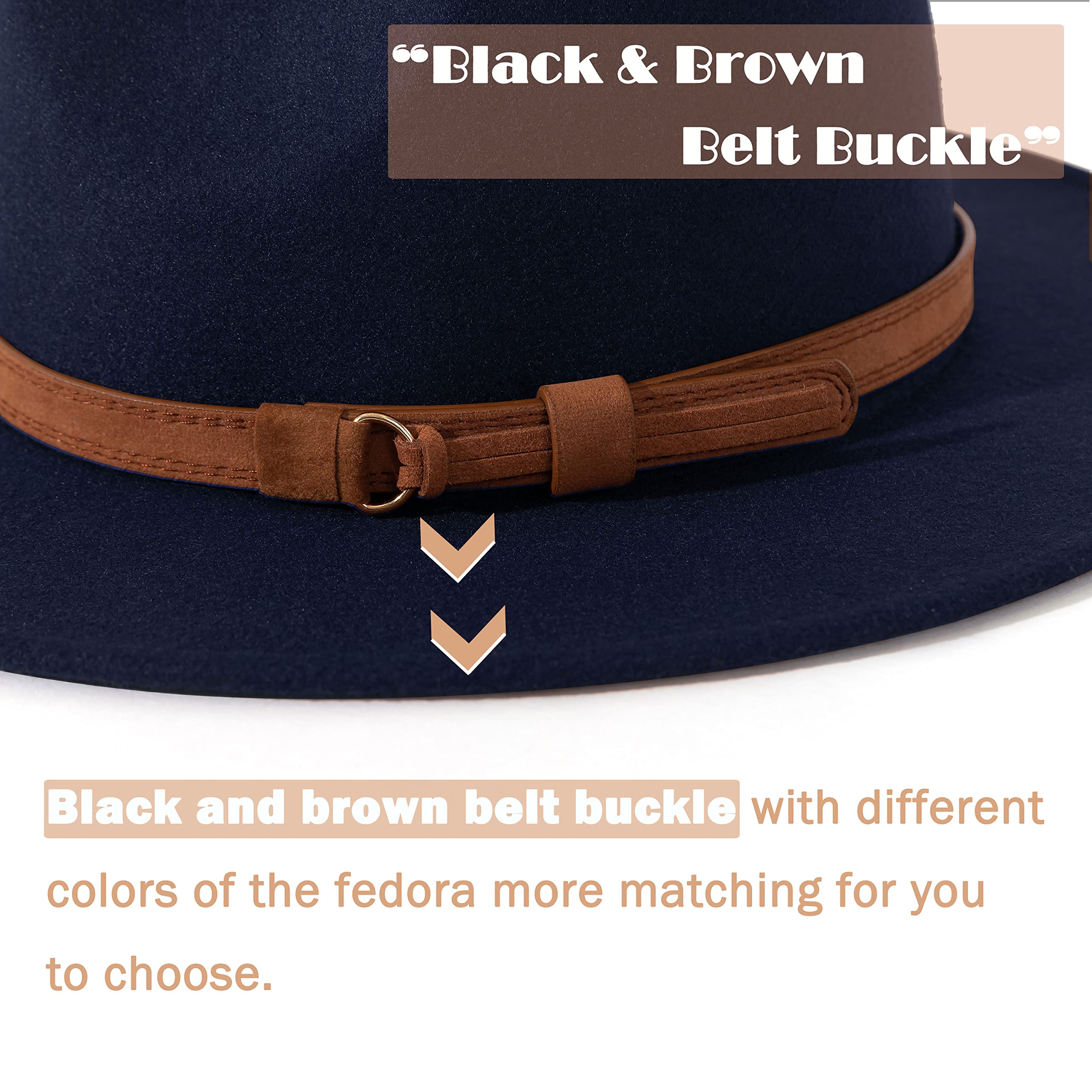 Lisianthus Men & Women Vintage Wide Brim Fedora Hat with Belt Buckle