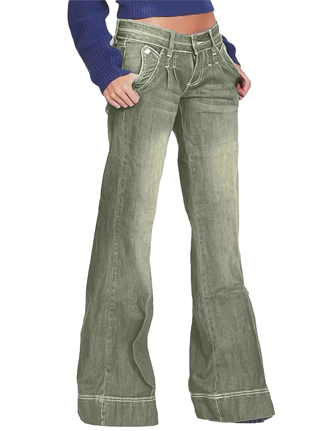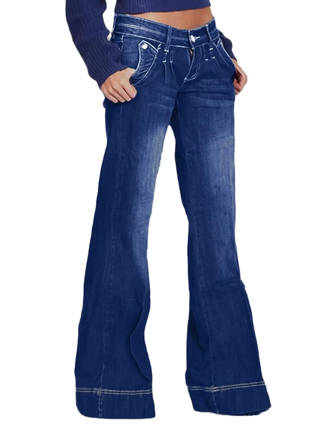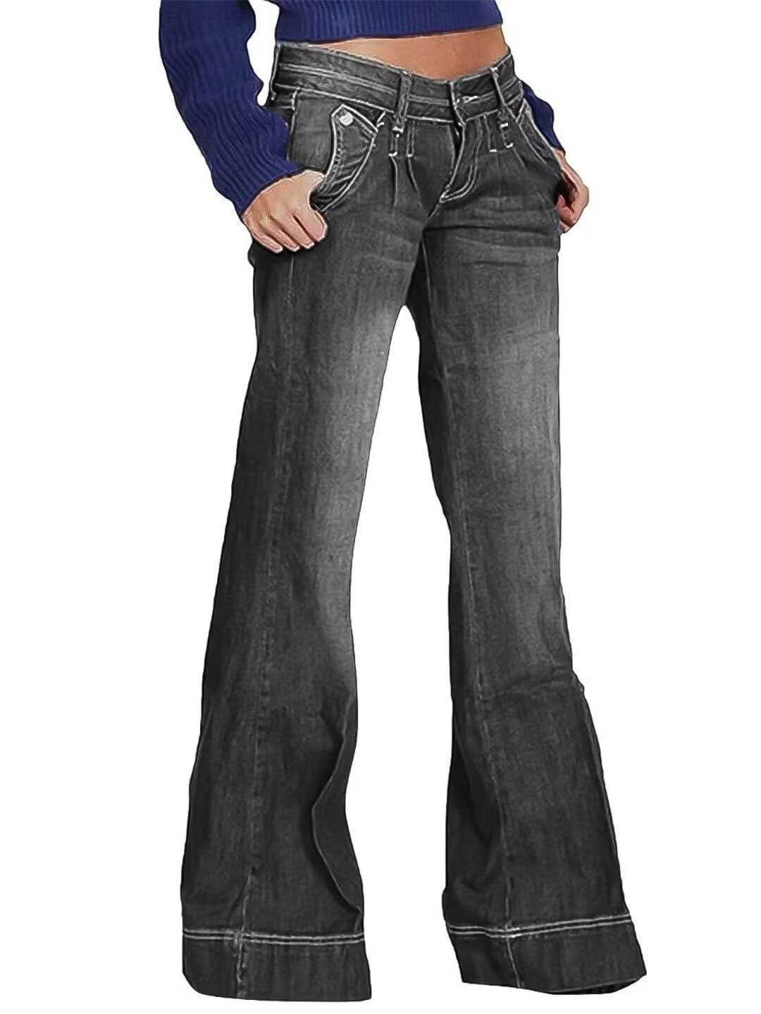 Low Rise Straight Leg Wide Leg Baggy Jeans Women Stretch Boyfriend Butterfly Flare Denim Pants