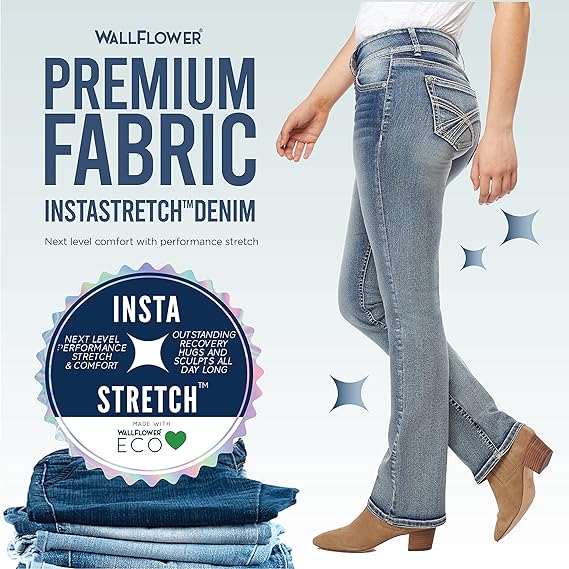 Luscious Curvy Bootcut Jeans for Women, Mid-Rise Insta Stretch Denim, Size-Inclusive Juniors Jeans, Sizes 0 to 24