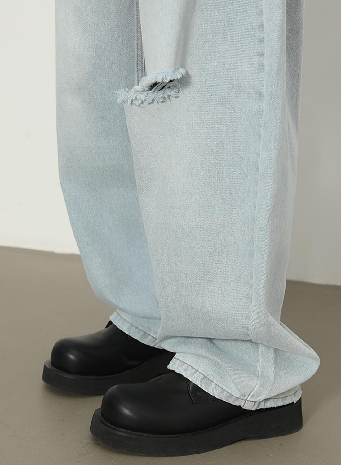 Men's Baggy Hip Hop Jeans Wide Leg Skater Denim Pants Casual Loose Fit Long Trousers Stree