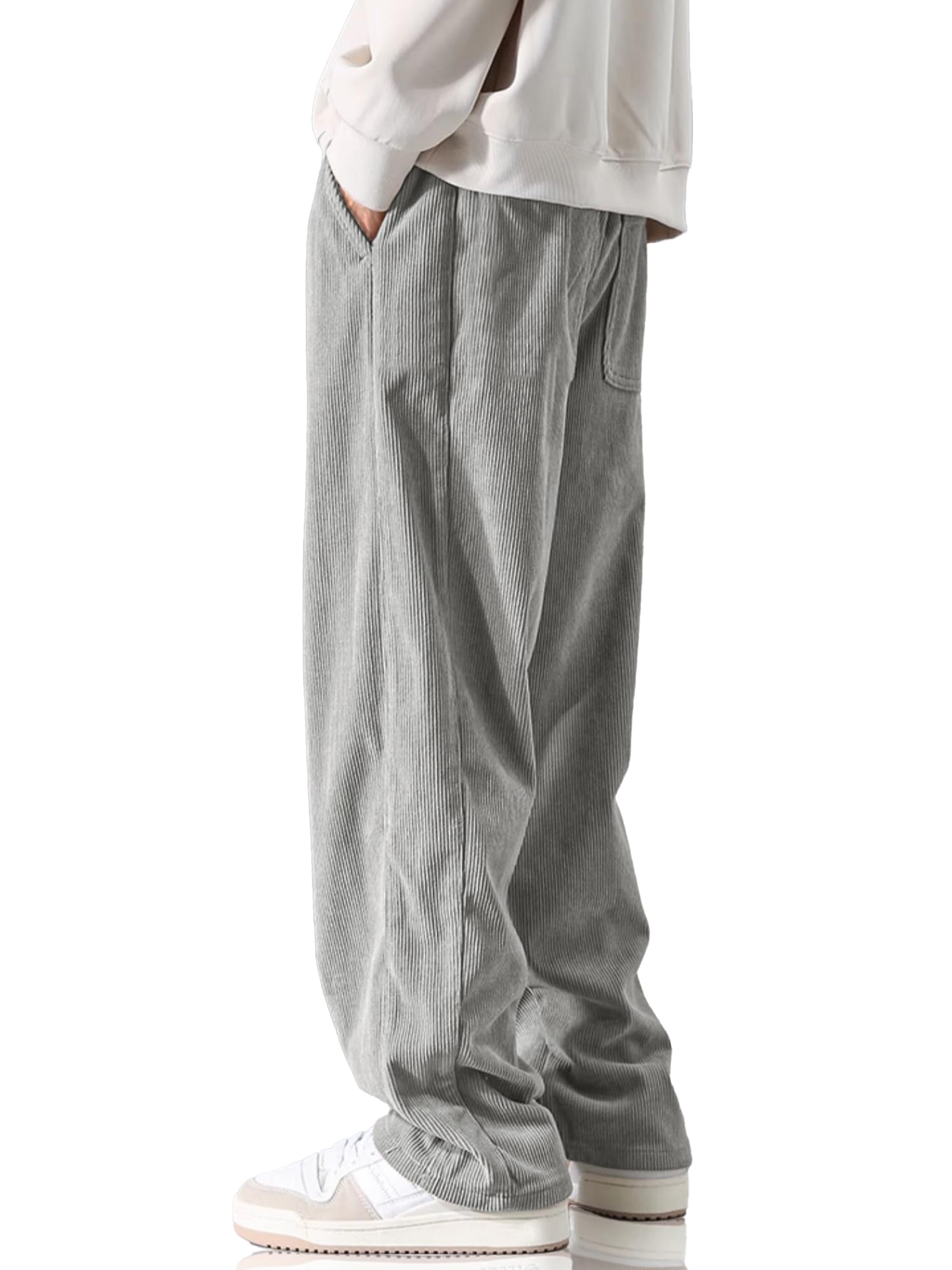 Men's Casual Corduroy Pants Elastic Waist Drawstring Baggy Sweatpants Loose Fit