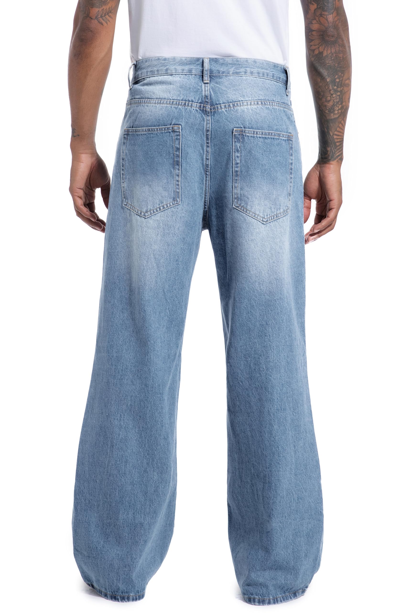 Men's Non-Stretch Loose Fit Wide-Leg Super Baggy Long Jeans Denim Pants