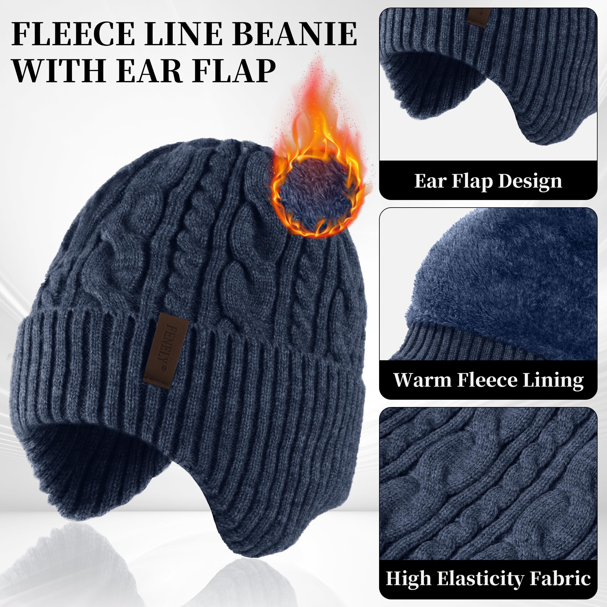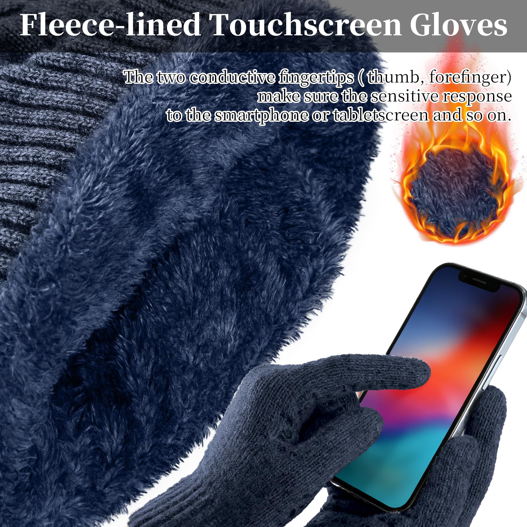 Men's winter beanie touchscreen gloves with neck warming cover 3-in-1 set, with wool lining