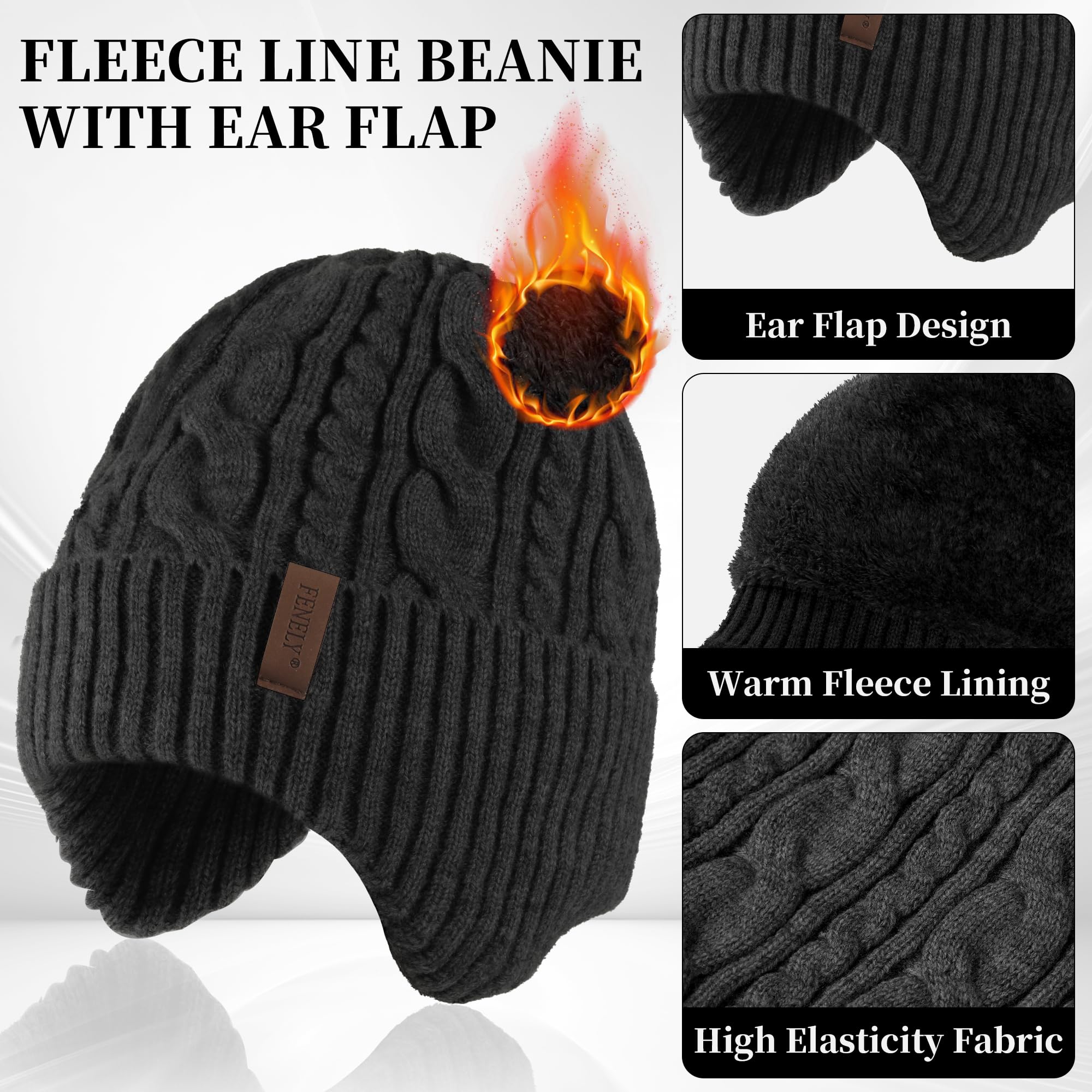 Men's winter beanie touchscreen gloves with neck warming cover 3-in-1 set, with wool lining