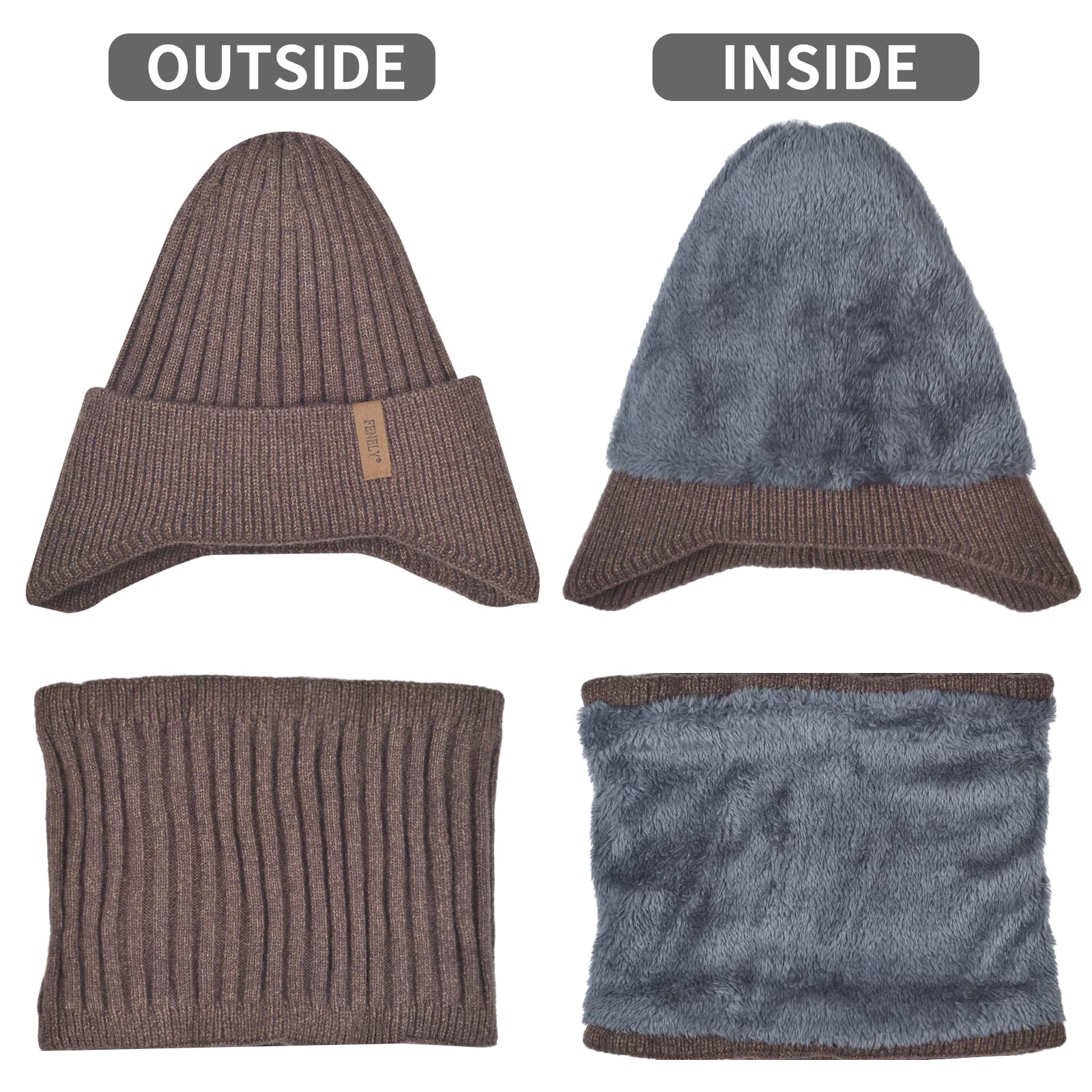 Men's winter beanie touchscreen gloves with neck warming cover 3-in-1 set, with wool lining