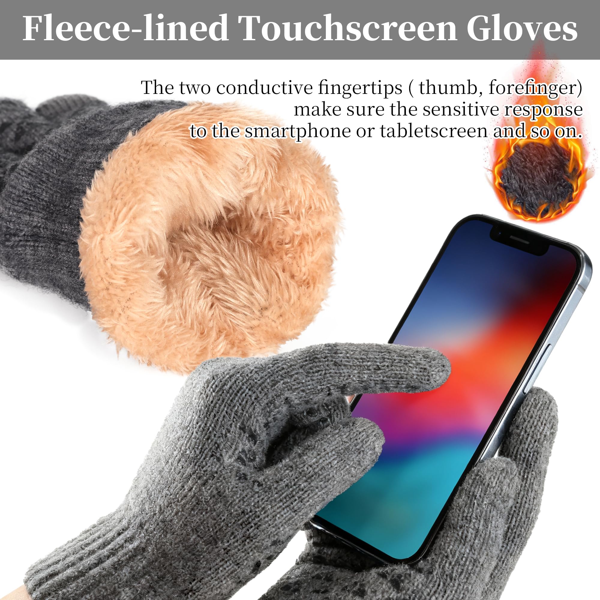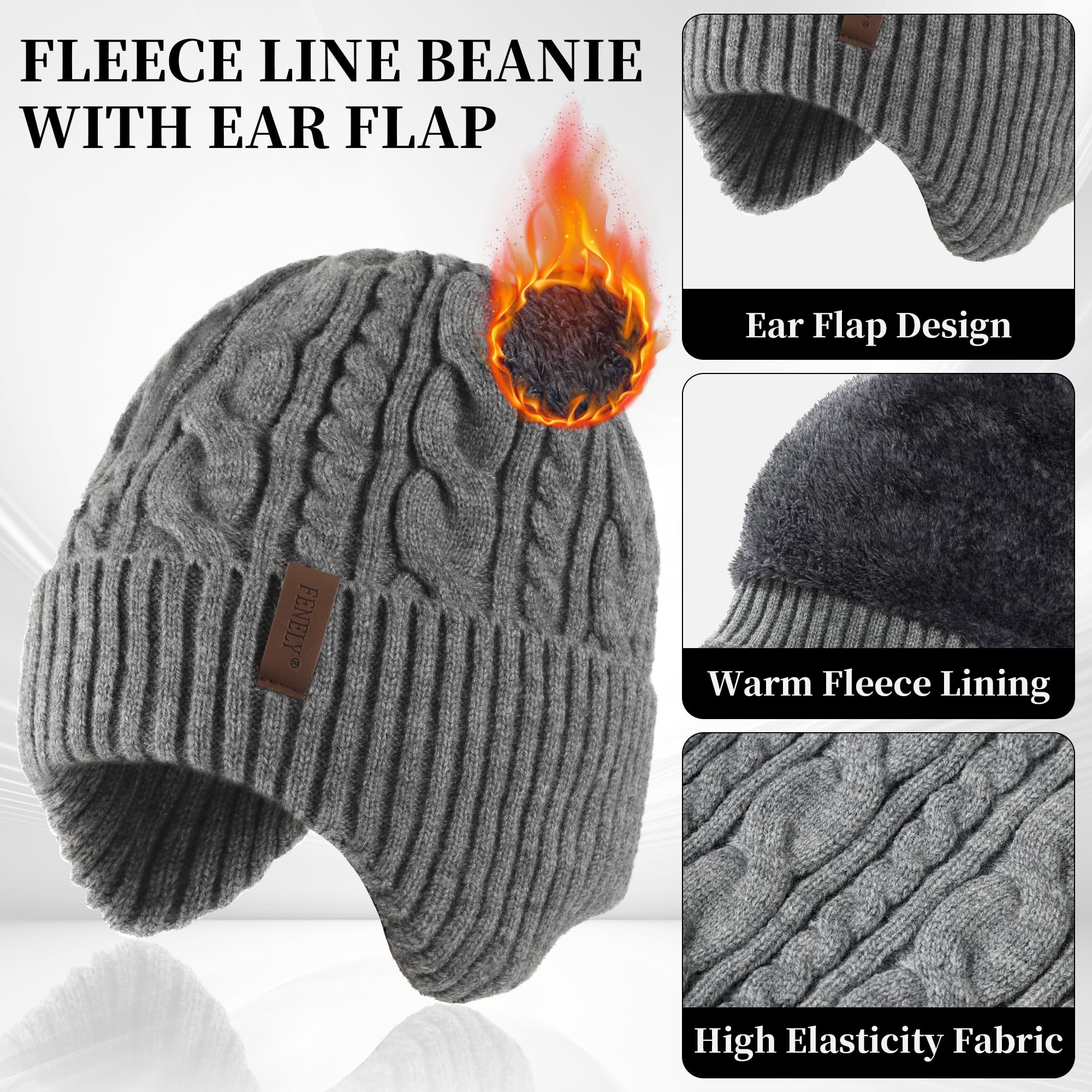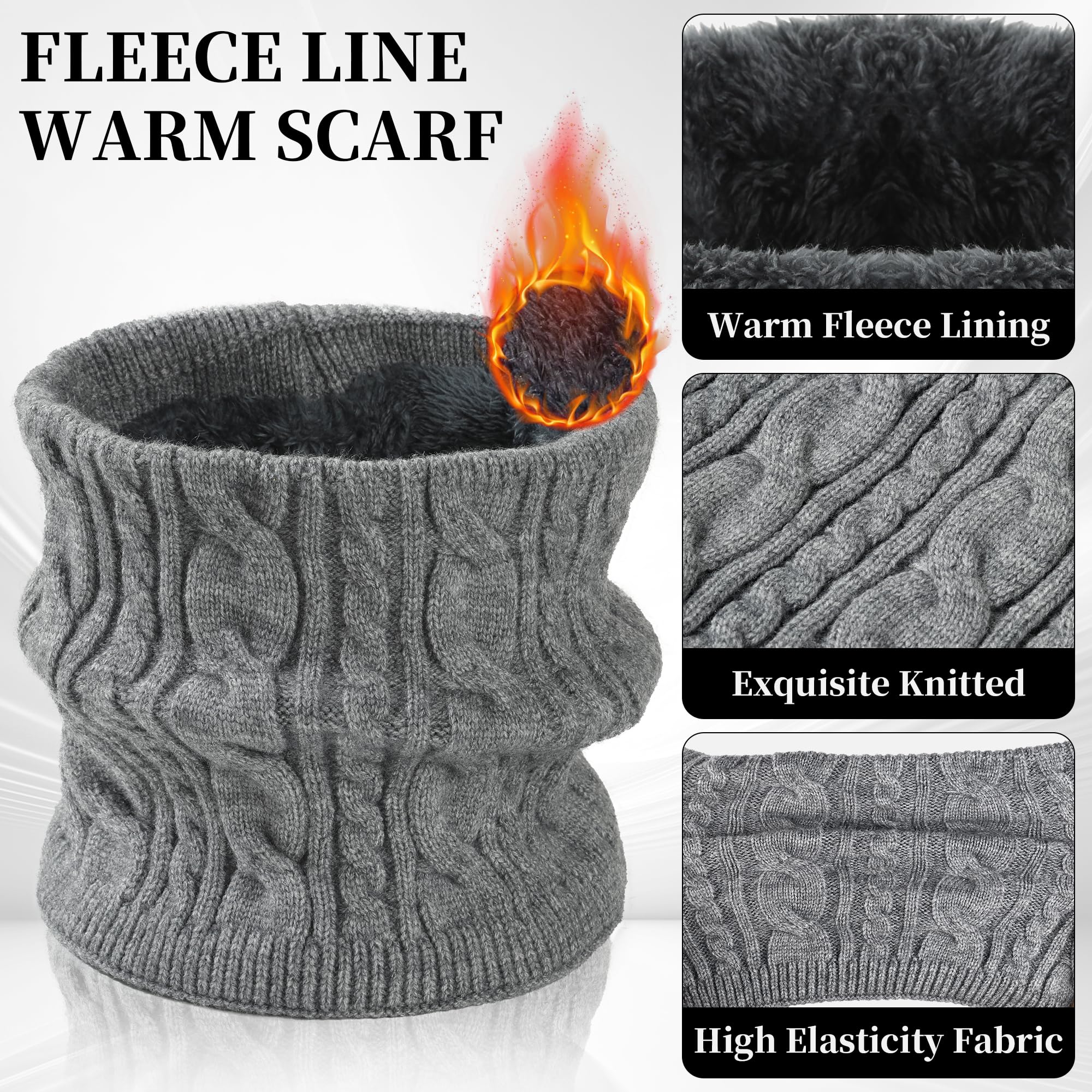 Men's winter beanie touchscreen gloves with neck warming cover 3-in-1 set, with wool lining