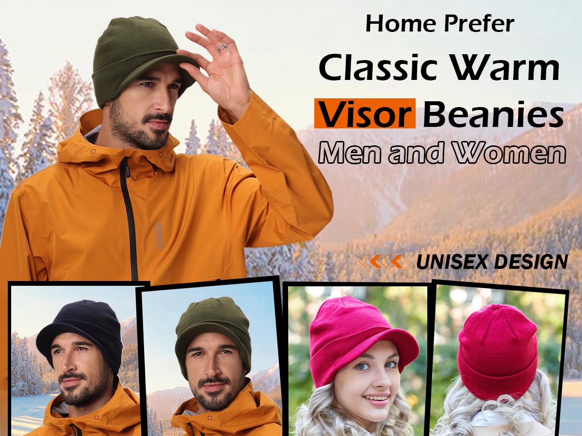 Men's winter beanie with brim for warmth, double-knit cuffs, no brim