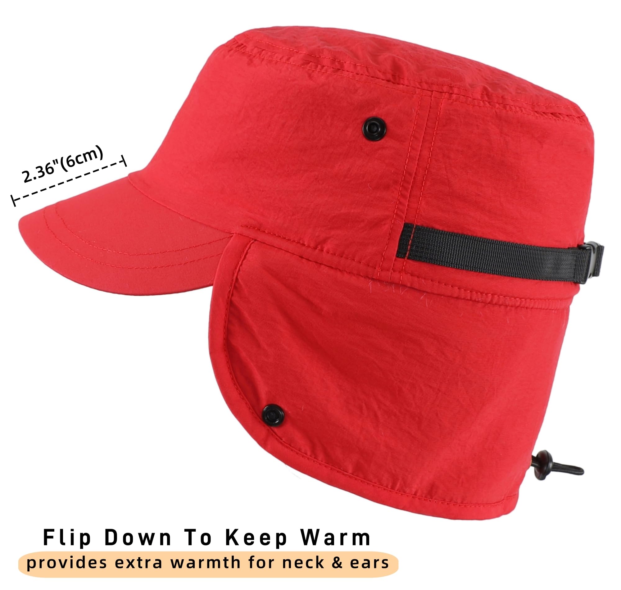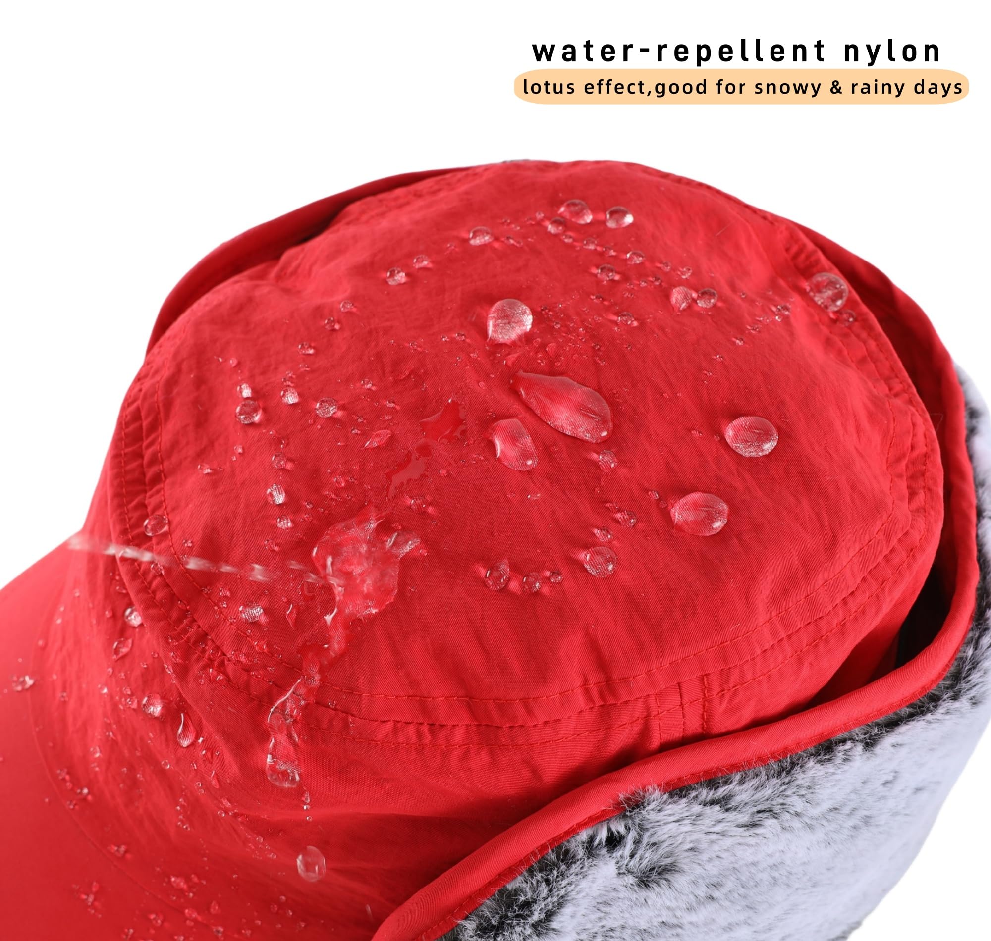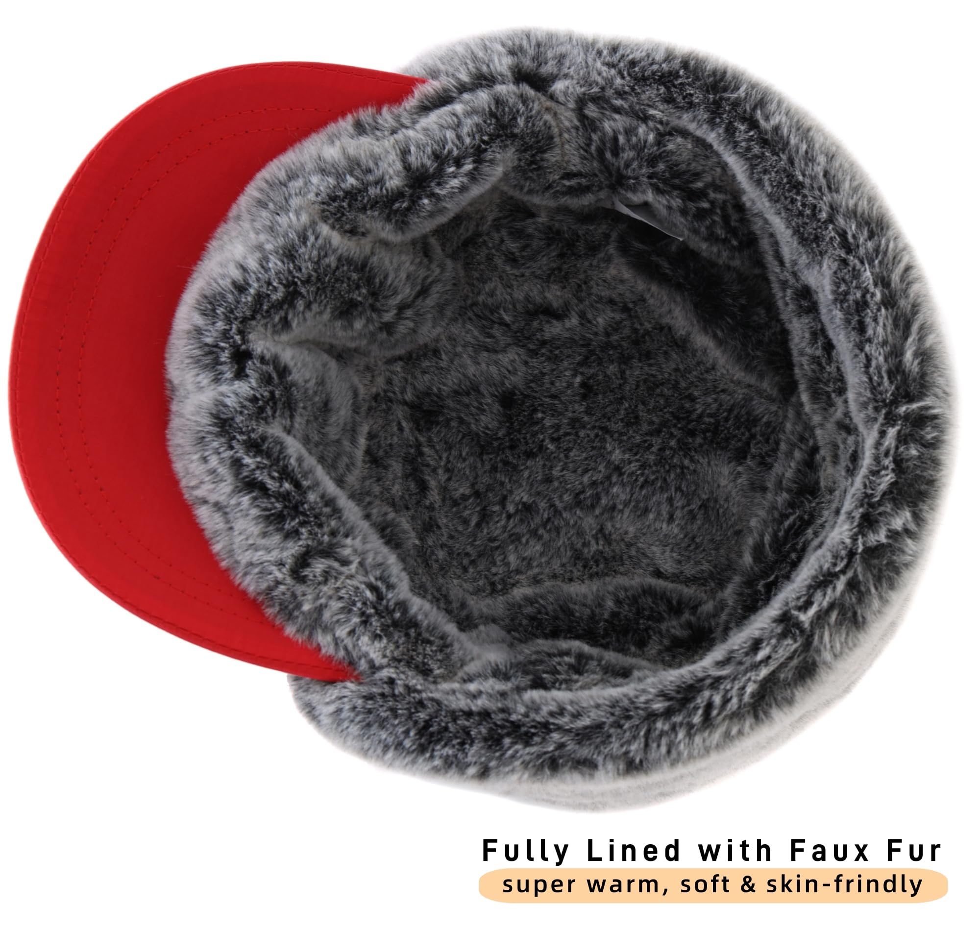 Men's winter cap with visor, warm earmuffs hat, fully lined faux fur baseball cap, catcher hunting cap