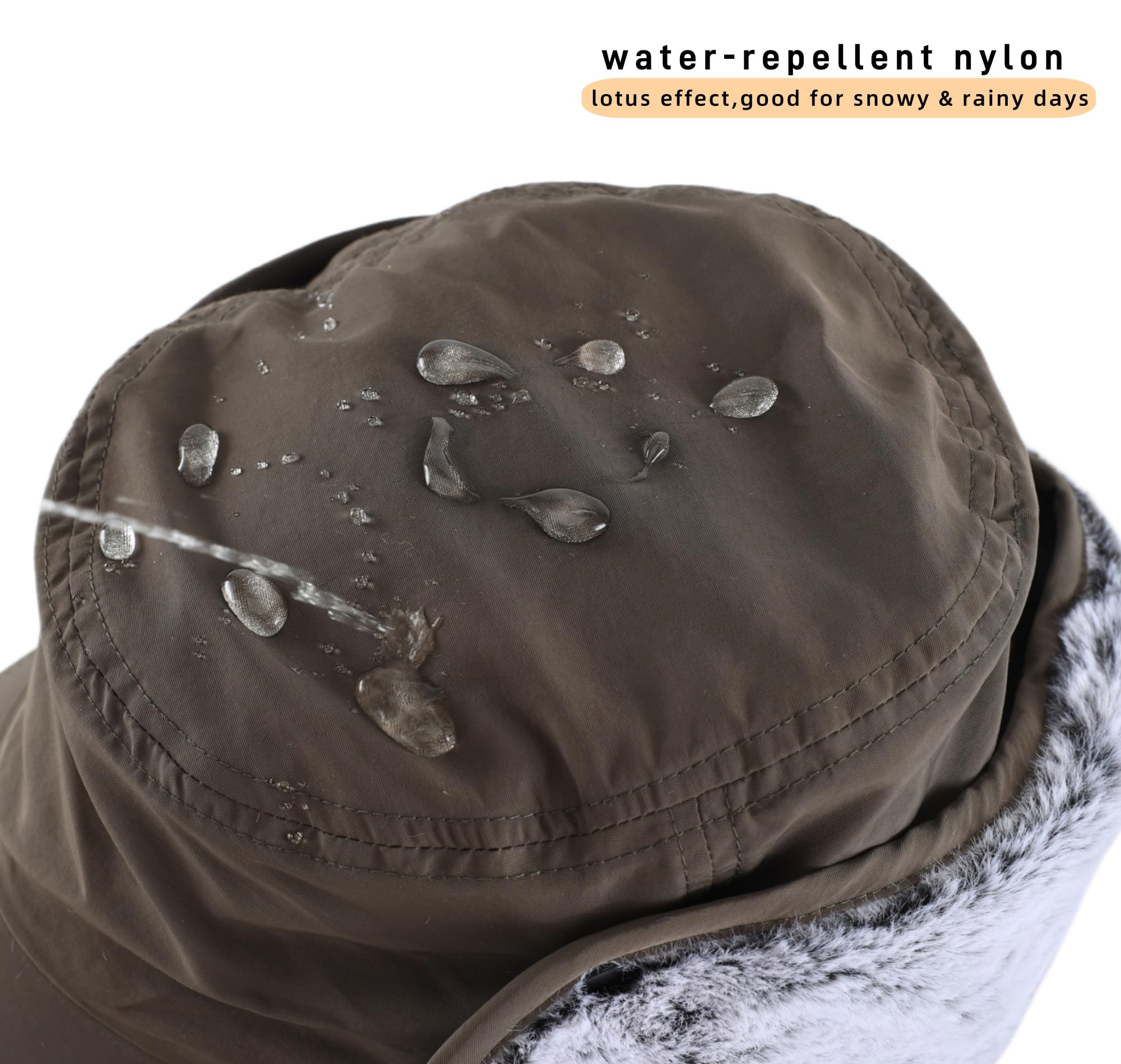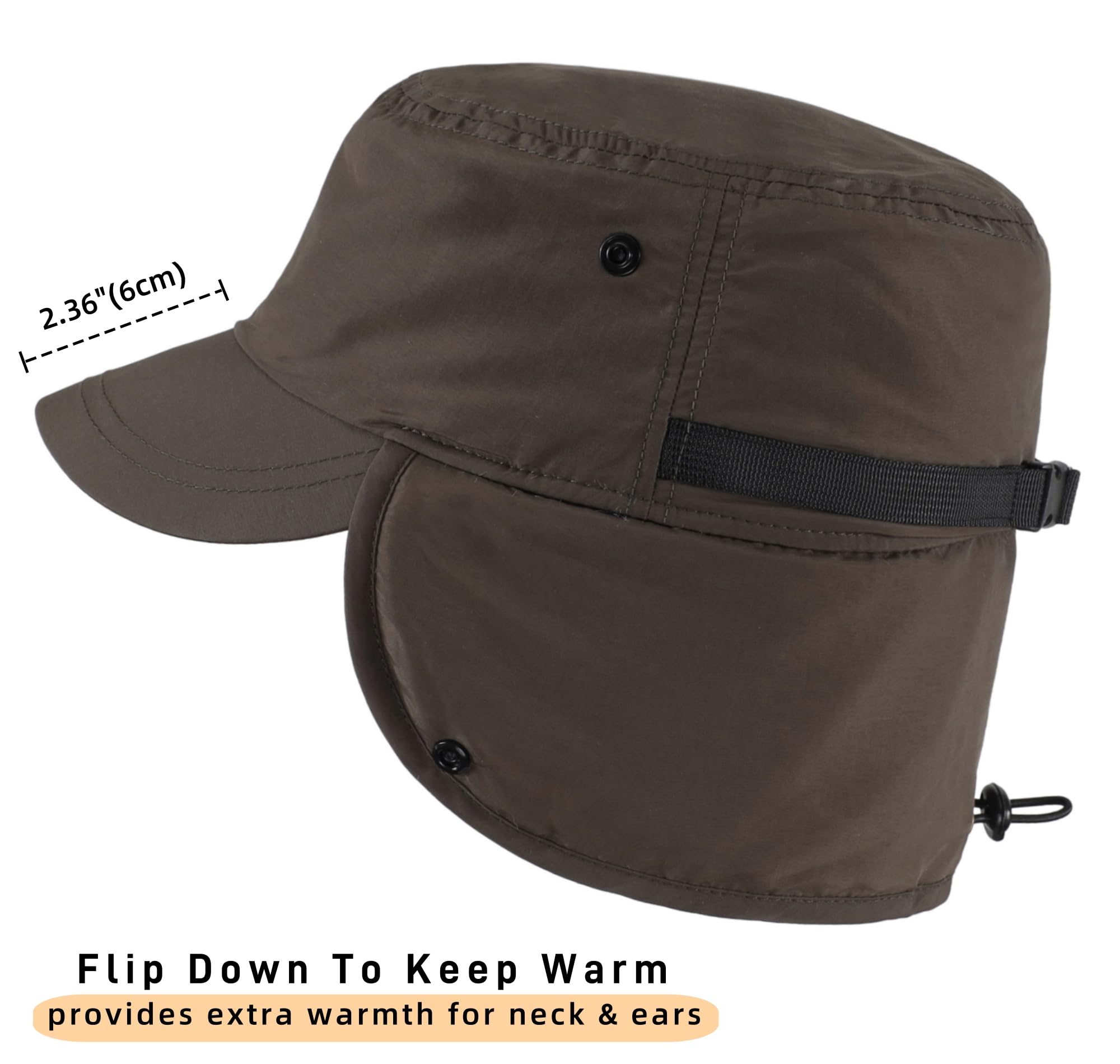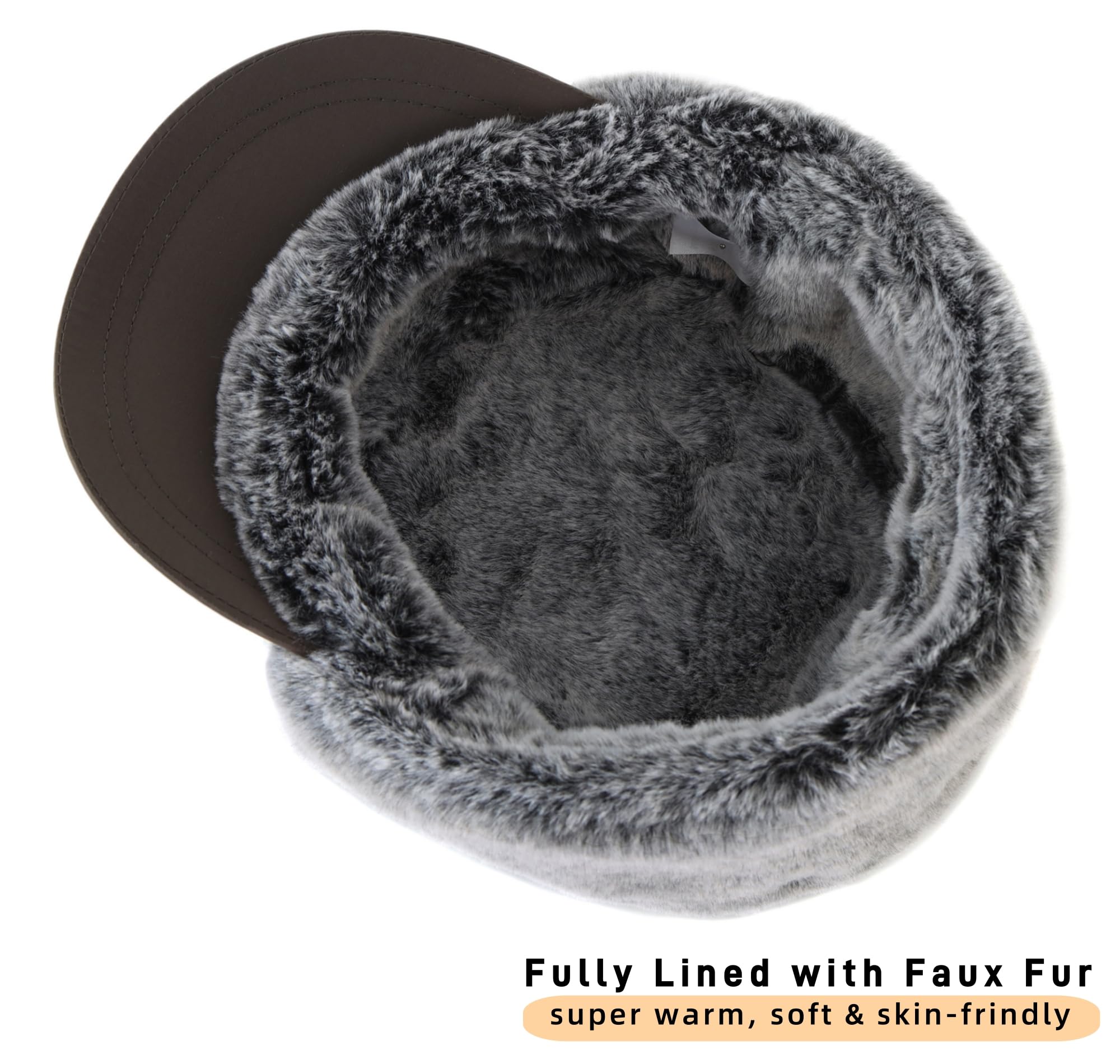 Men's winter cap with visor, warm earmuffs hat, fully lined faux fur baseball cap, catcher hunting cap