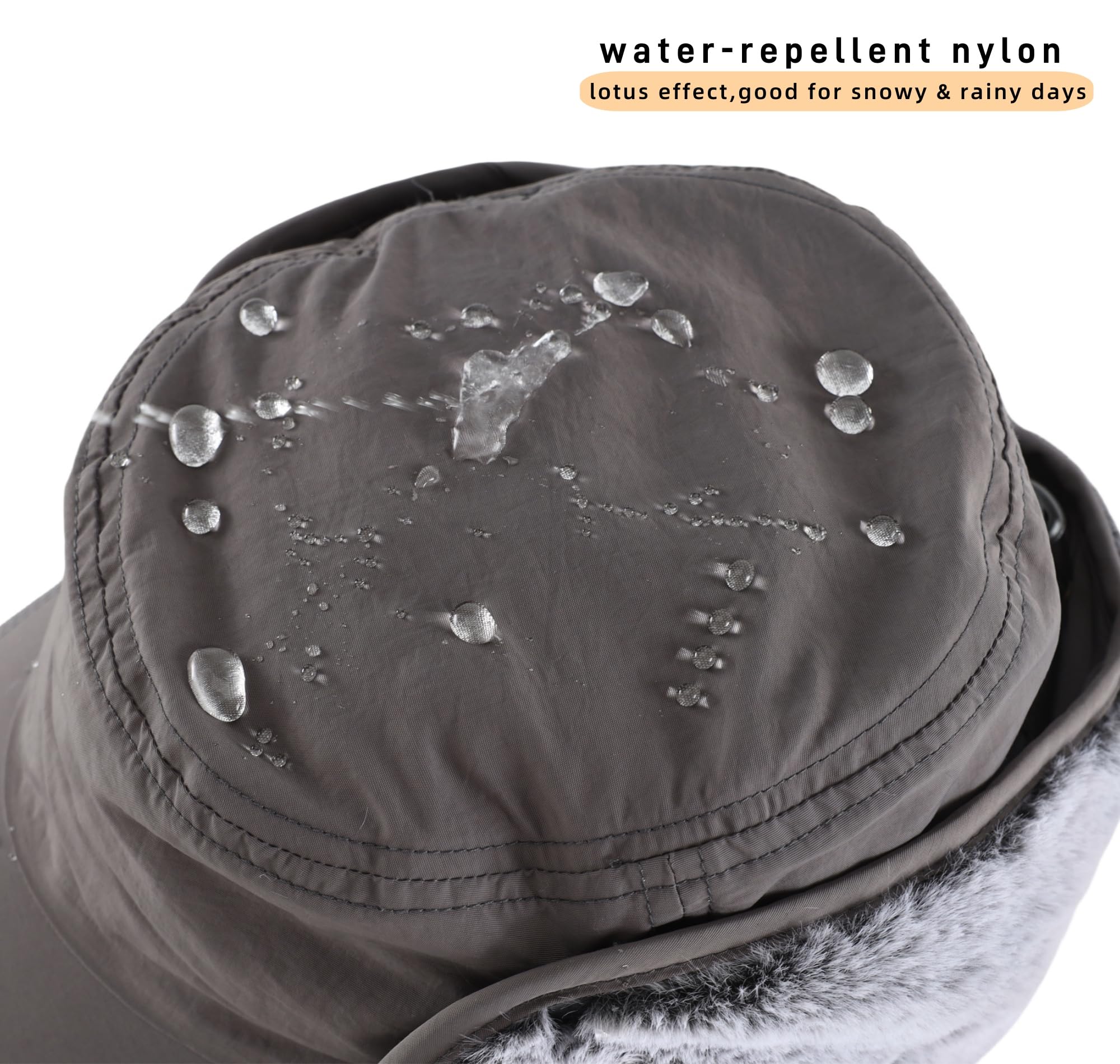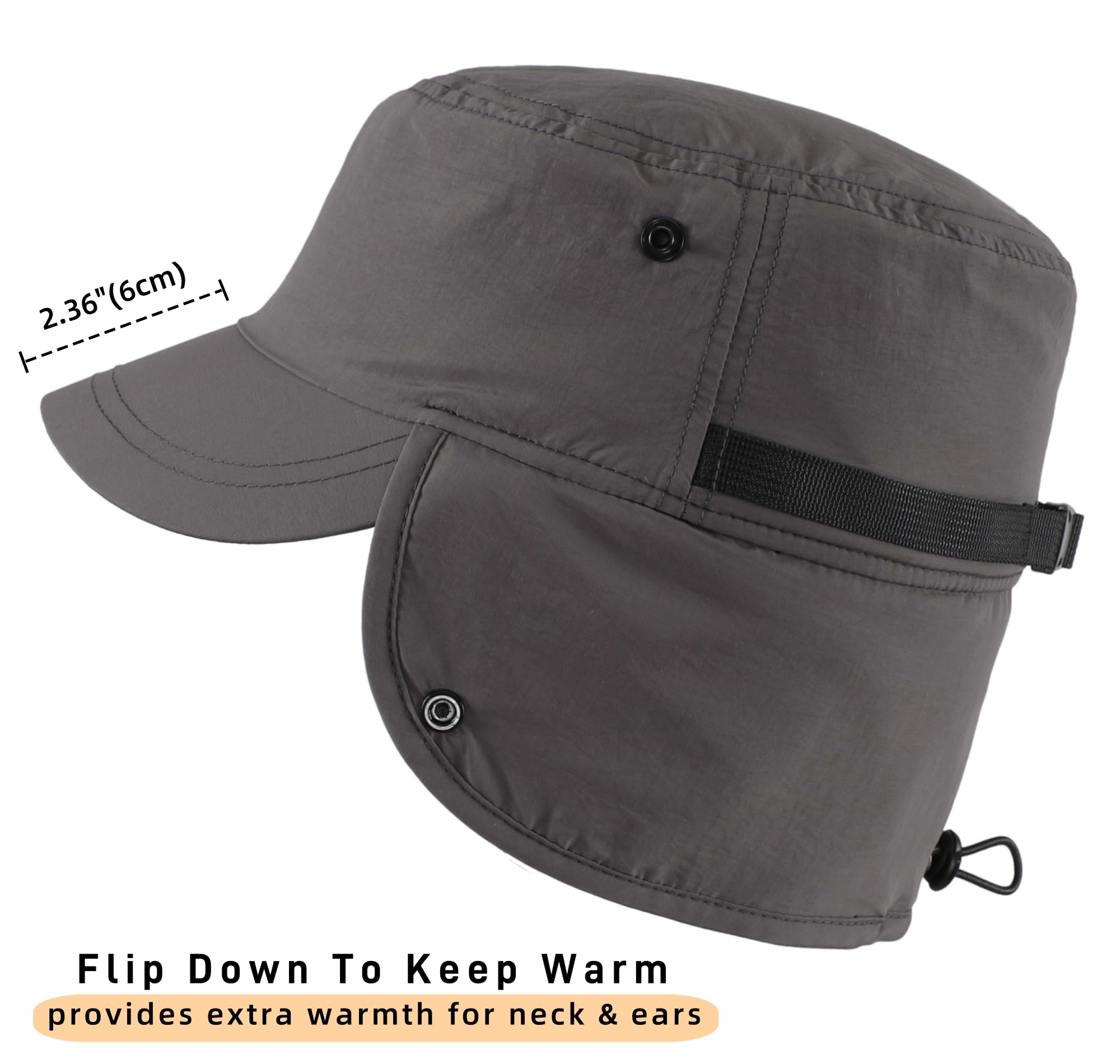 Men's winter cap with visor, warm earmuffs hat, fully lined faux fur baseball cap, catcher hunting cap