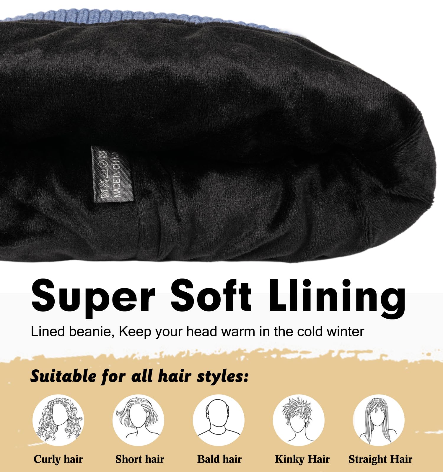 Men's Women's Winter Flat Brim Hat, Wool Inner Liner Flat Brim Hat, Soft and Warm Knitted Hat, Ski Socks with Flap Brim
