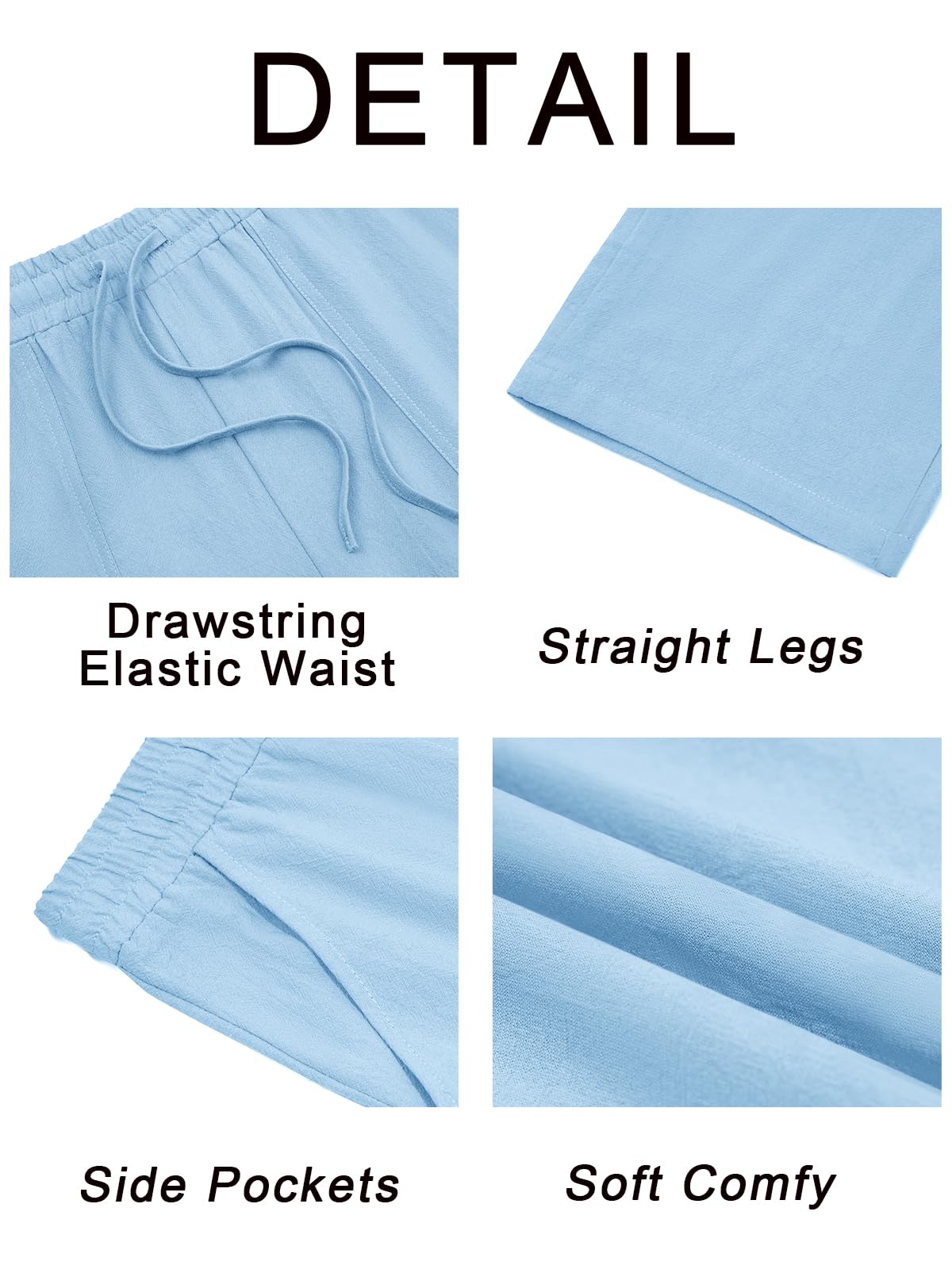 Mens Casual Pants Linen Drawstring Elastic Waist Loose Fit Straight Leg Pants Summer Beach V