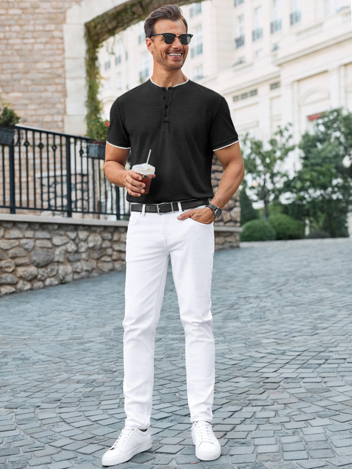 Mens Henley Shirts Short Sleeve Casual Polo Shirts Summer Business Workout Golf T- Shirts