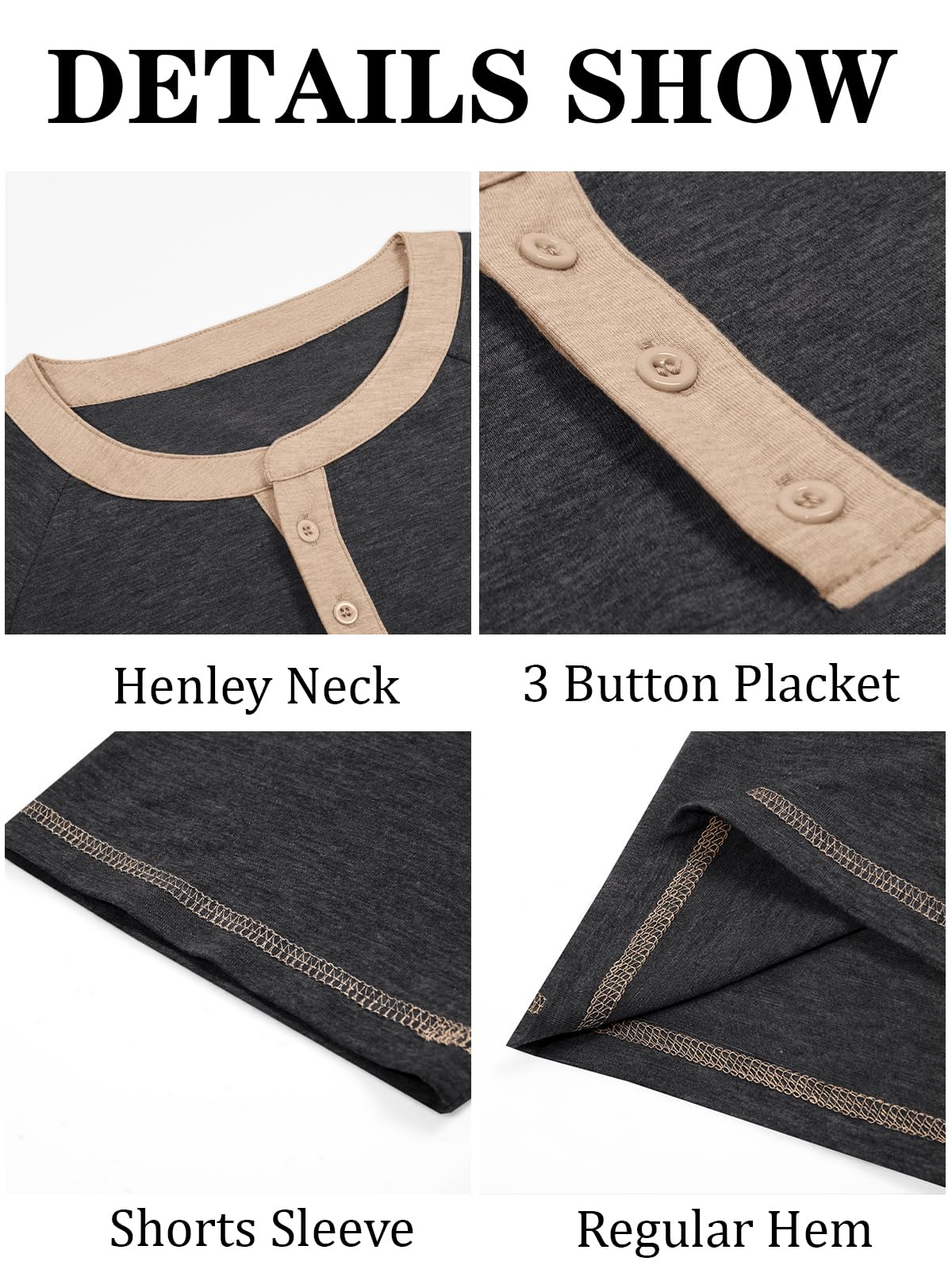 Mens Henley Shirts Short Sleeve Casual Summer Basic T Shirts Button Vintage Lightweight Tee