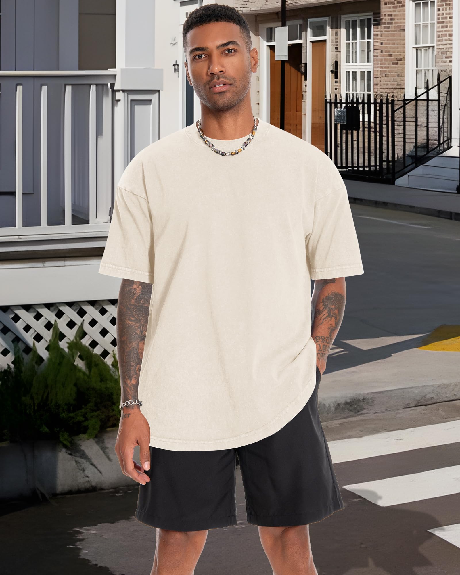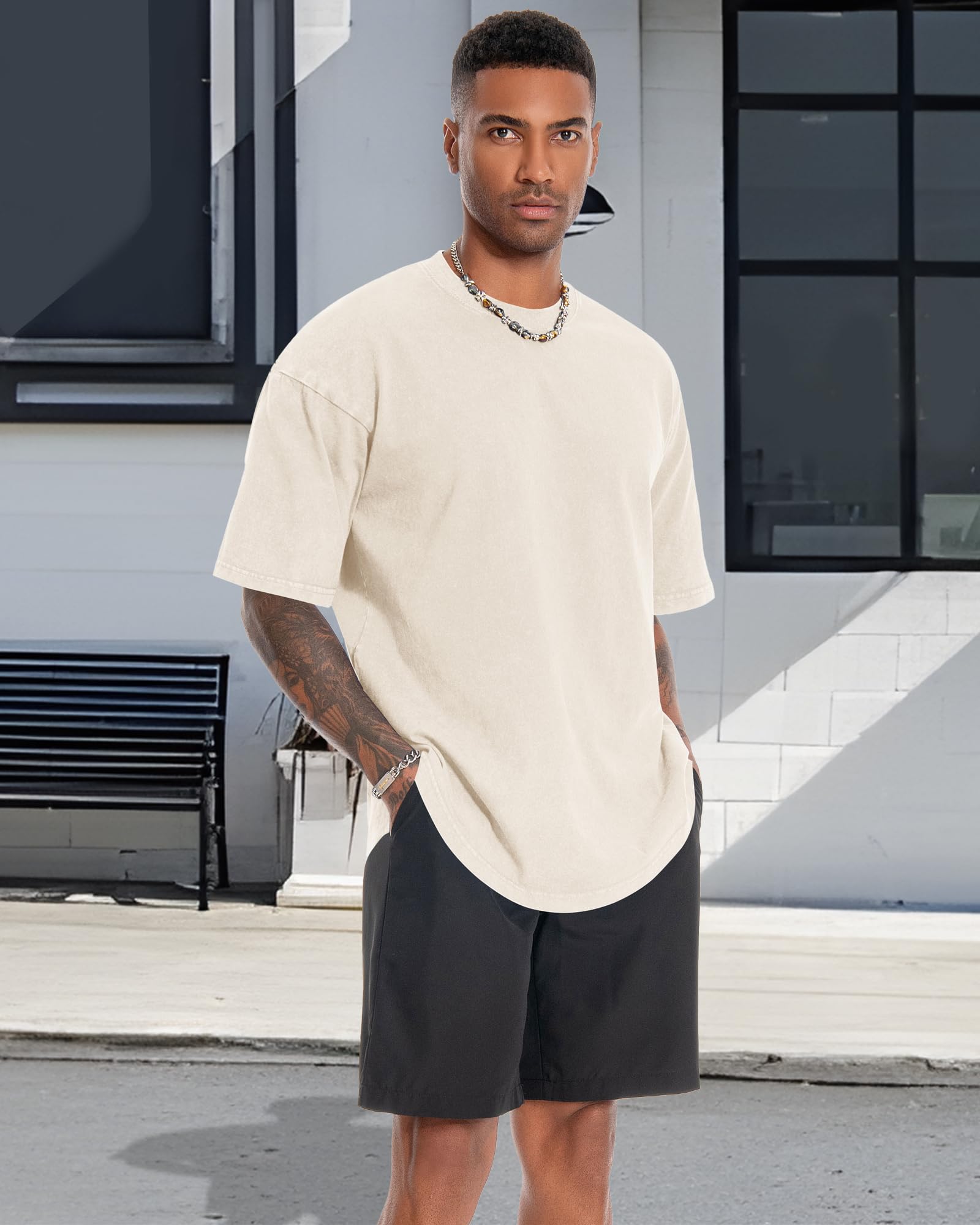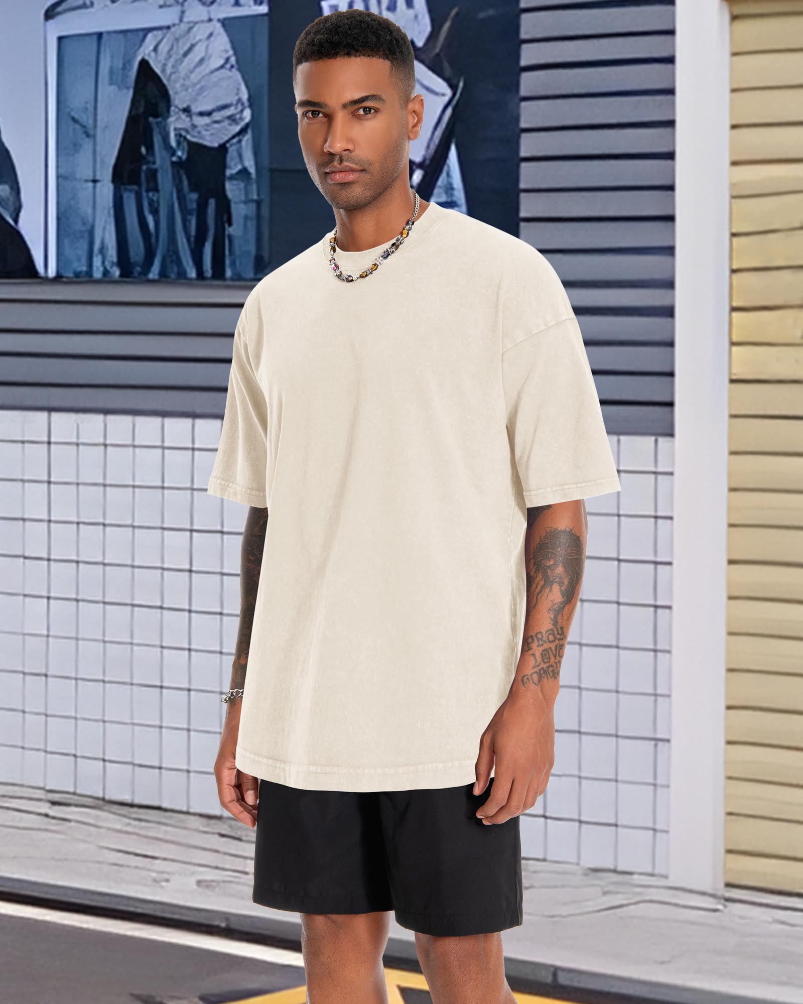 Oversized Tshirts for Men Short Sleeve Vintage Washed Basic Loose Tees