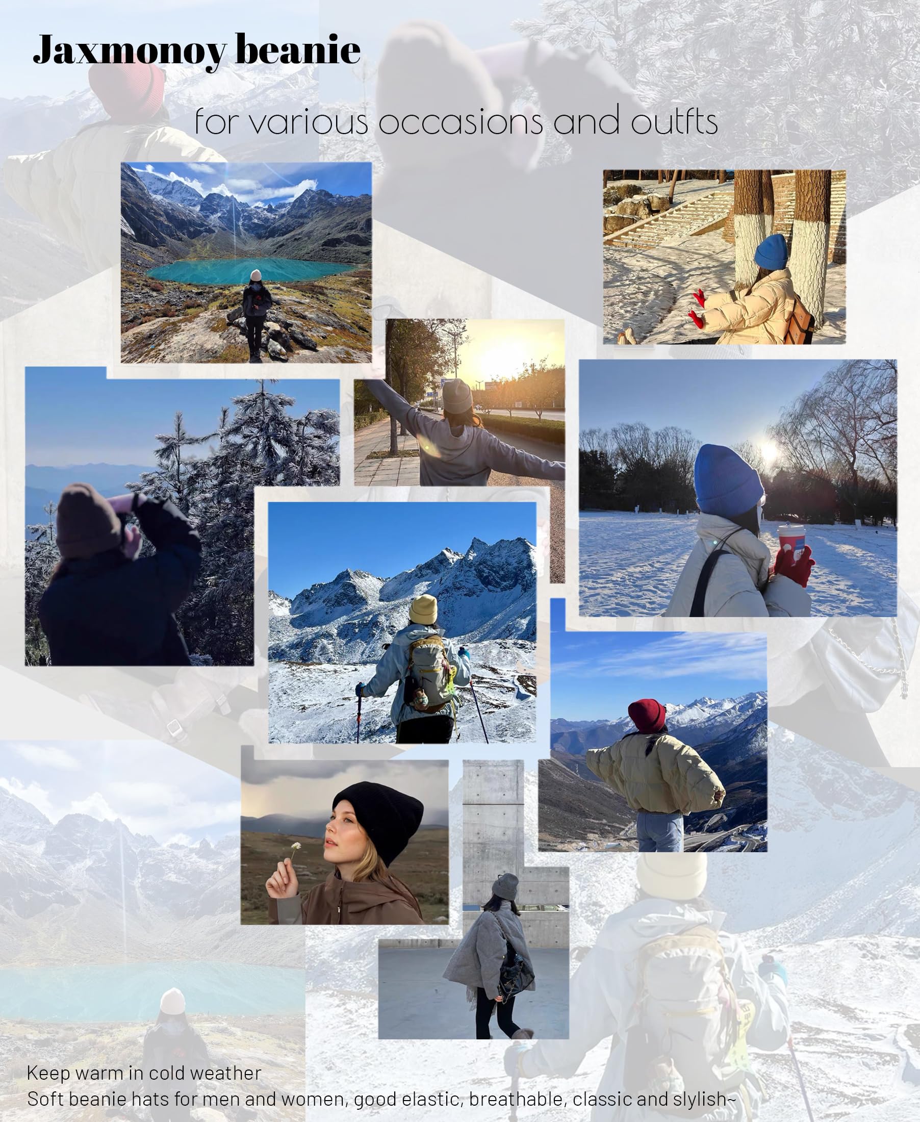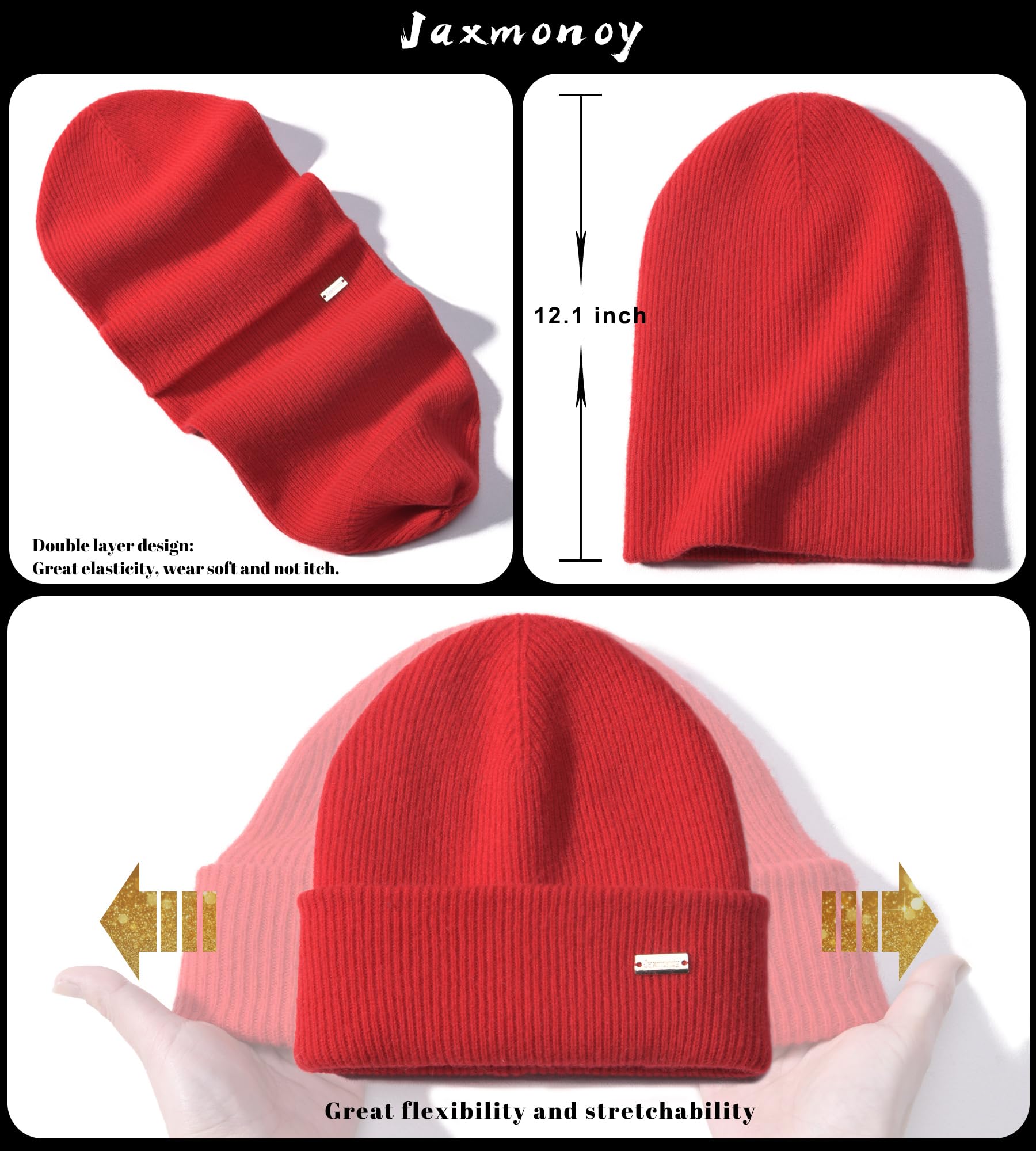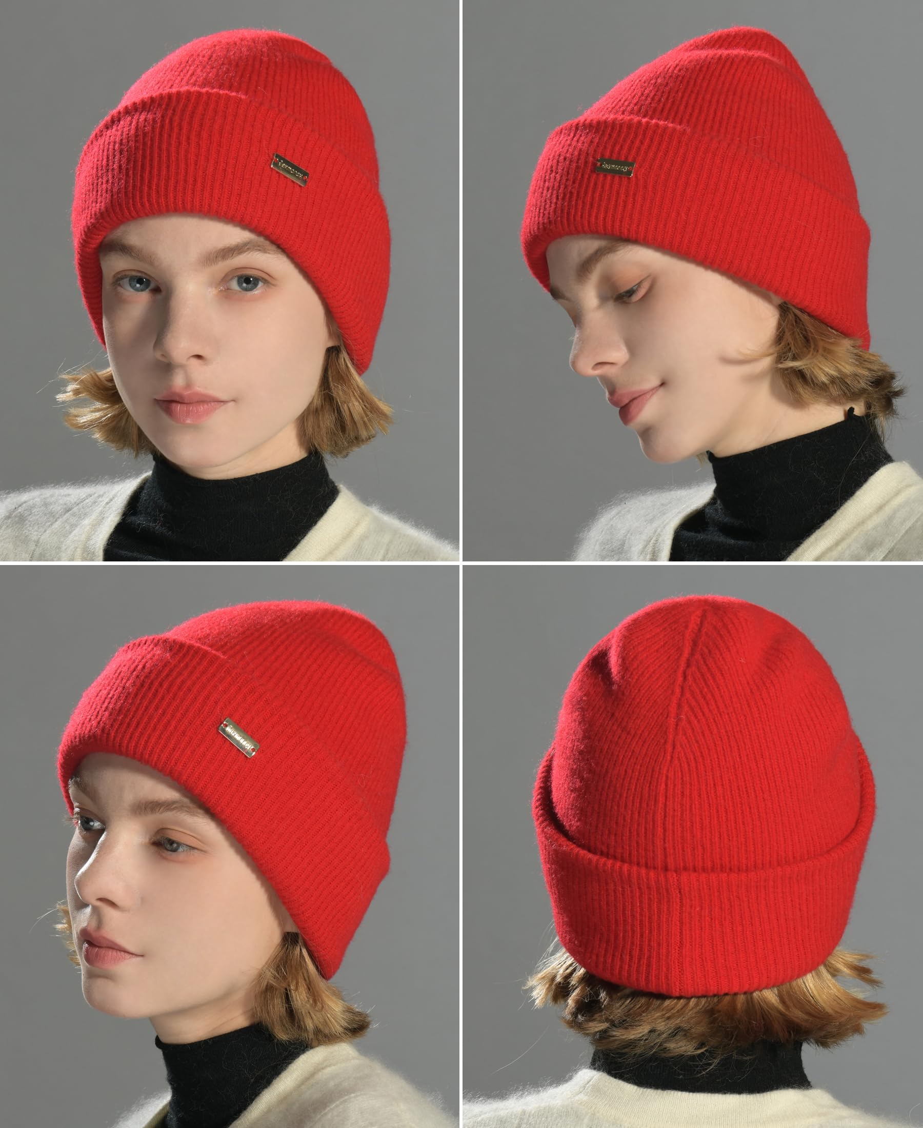 Merino wool knitted winter brimless hat for women and men, soft and warm, double-layered casual knitted brimless hat, skull cap