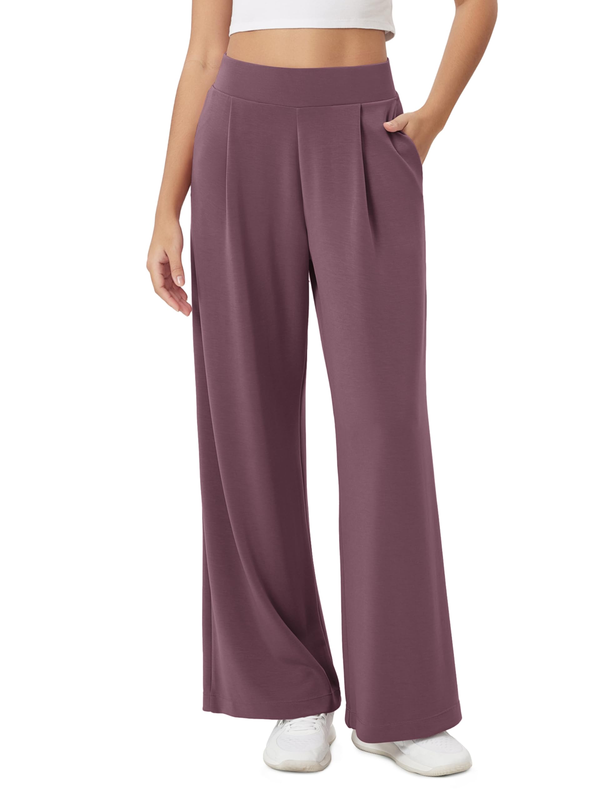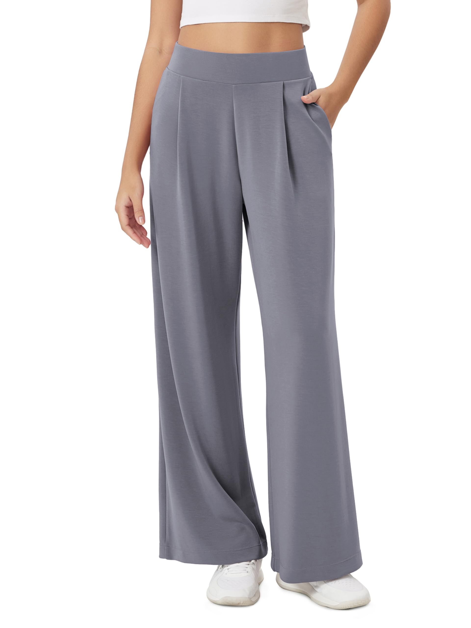 Modal Soft Wide Leg Pants for Women High Waist Casual Relaxed Pants with Pockets-27/29"/ 31" Inseam