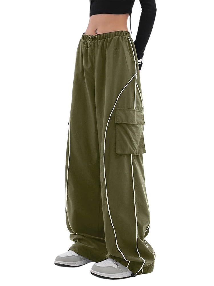 Parachute Track Pants for Women Low Rise Baggy Wide Leg Cargo Pants for Women