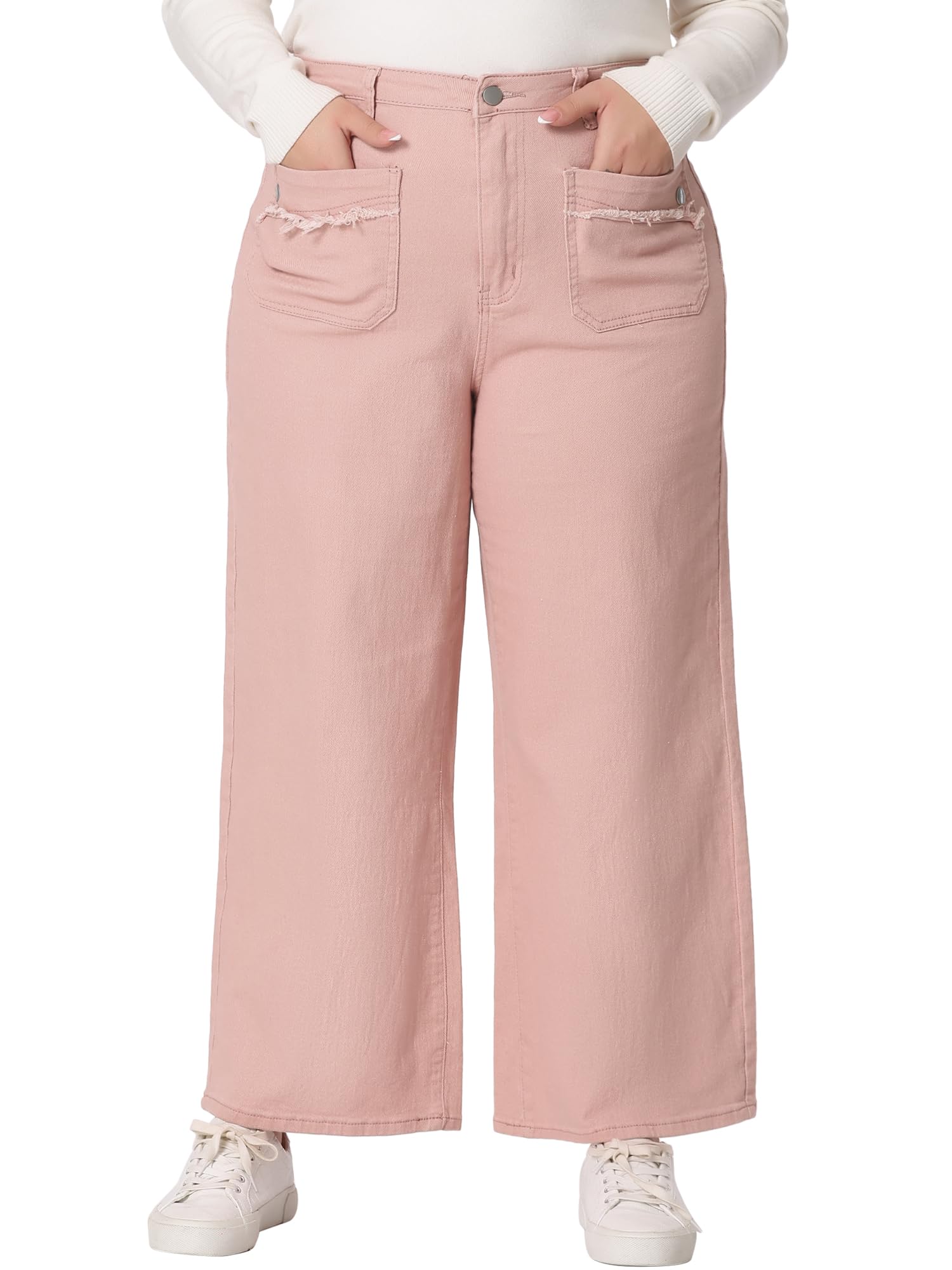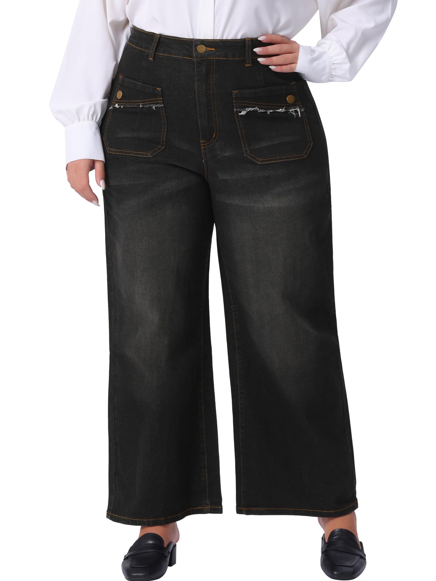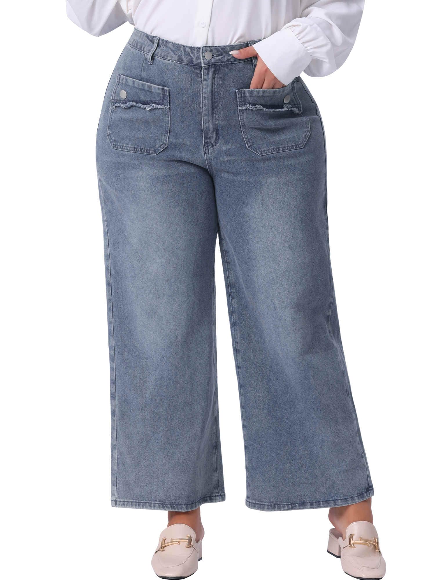 Plus Size Jeans for Women Wide Leg Washed Stretch with Pockets Palazzo Pants