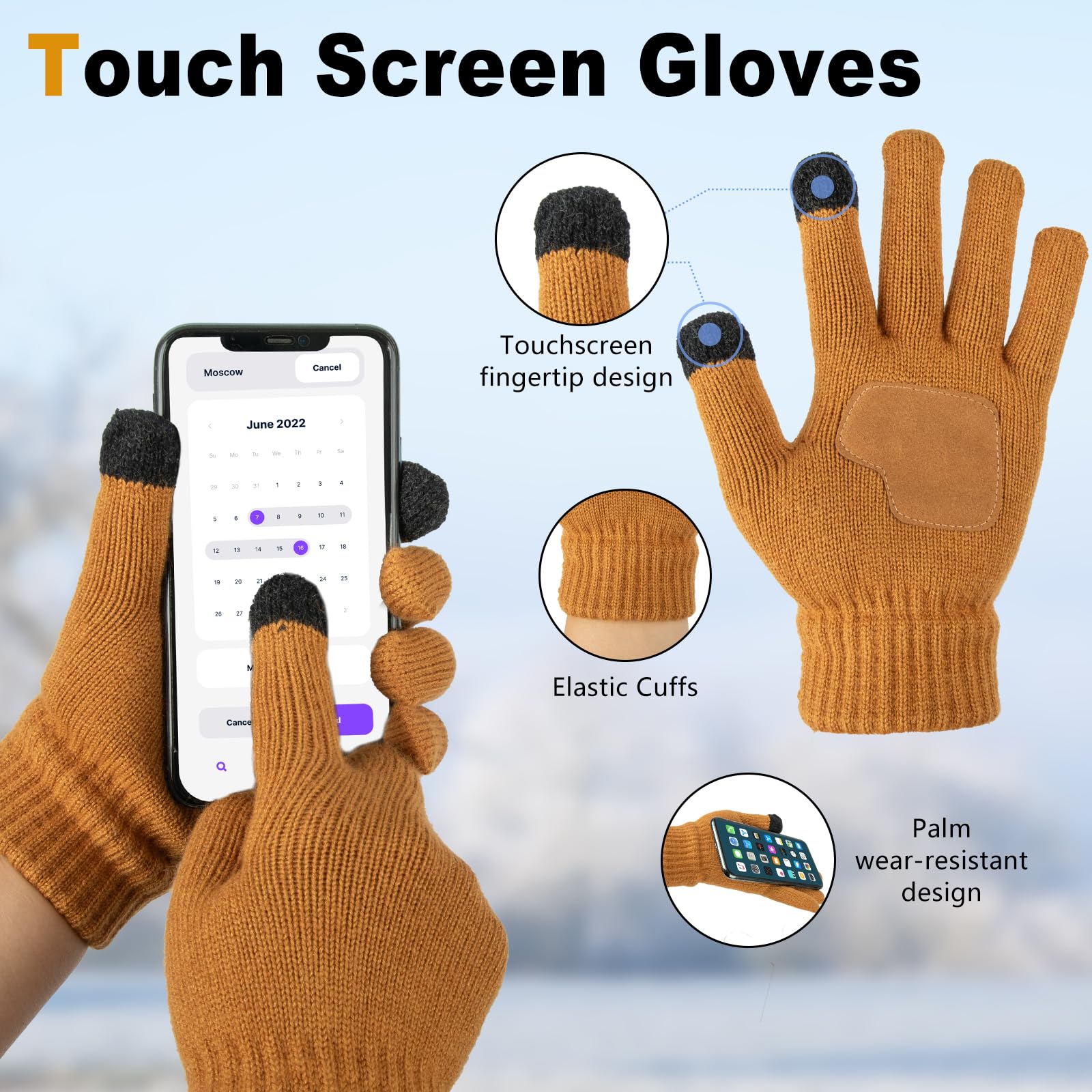 Conjunto de gorro, cachecol e luvas de inverno de 3 peças, gorro de malha grosso com forro de pescoço quente feito de lã, um ótimo presente para homens e mulheres