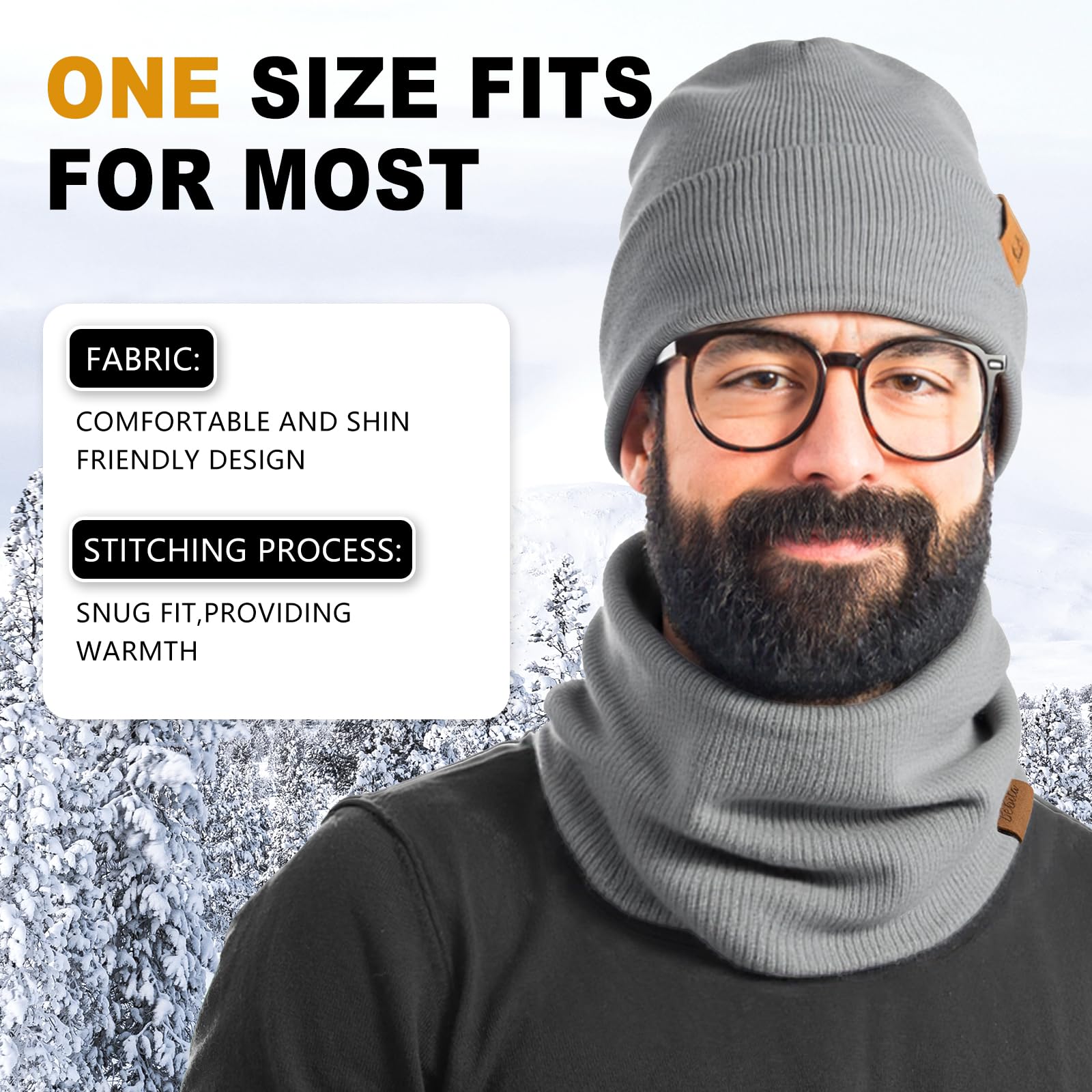 Conjunto de gorro, cachecol e luvas de inverno de 3 peças, gorro de malha grosso com forro de pescoço quente feito de lã, um ótimo presente para homens e mulheres