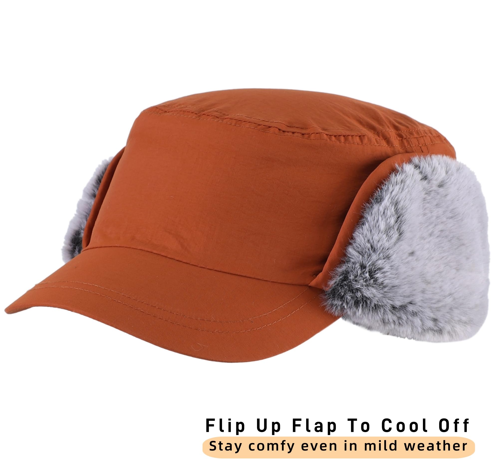 Boné de inverno masculino com aba e protetores de orelha, boné de beisebol de pele sintética, boné de caça de apanhador