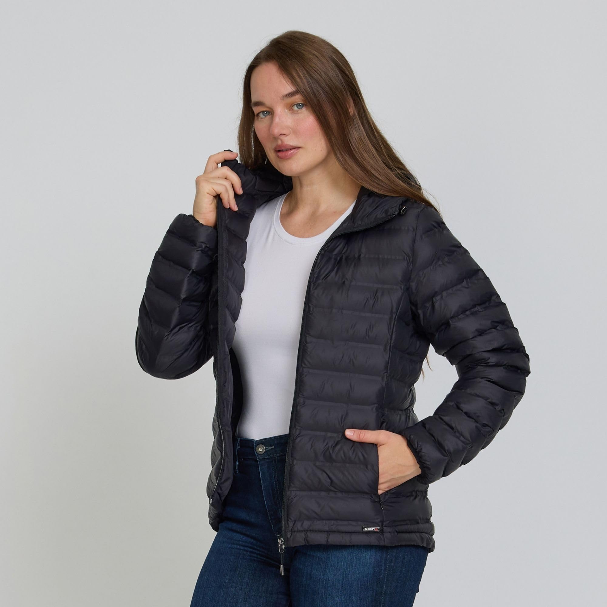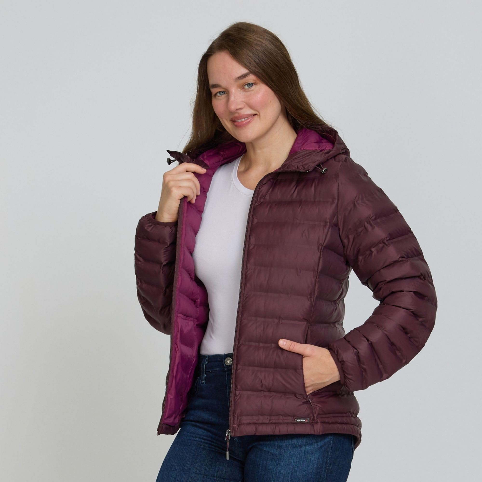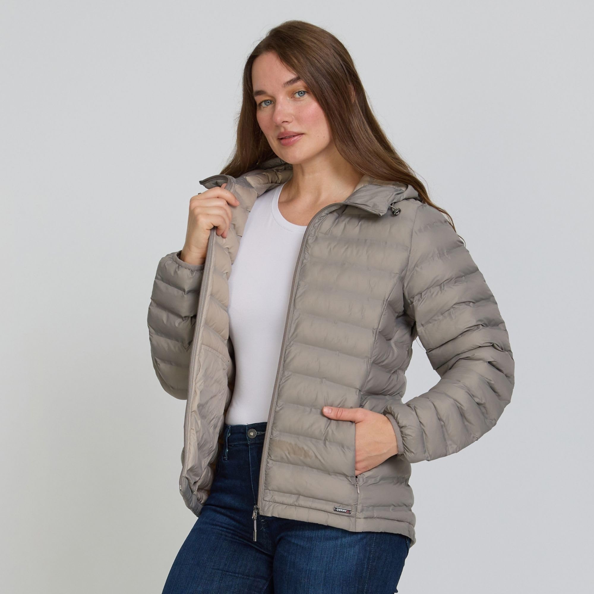 Jaqueta Puffer feminina embalável com capuz - Casaco fofo feminino acolchoado com zíper completo para viagem quente e leve para o inverno