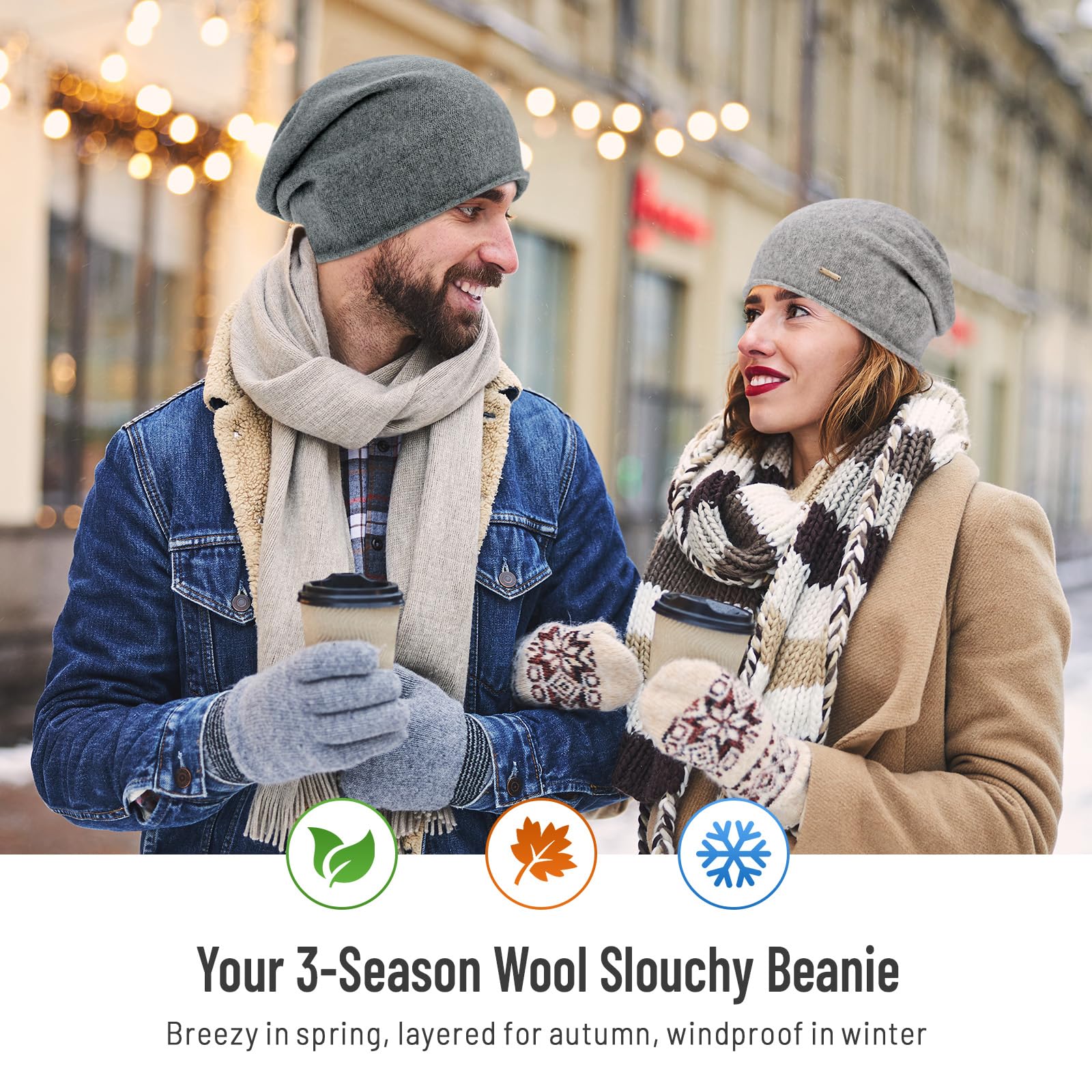 Conjunto de gorro de inverno em malha de lã térmica, cachecol e luvas touchscreen - presente de inverno adulto neutro