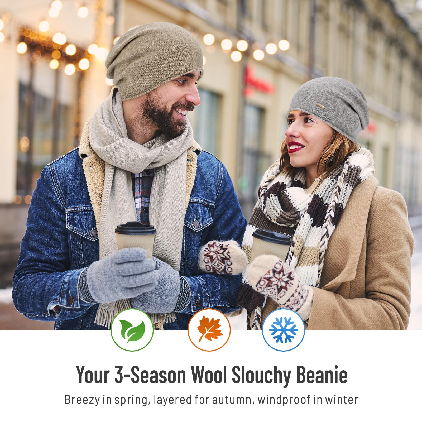 Conjunto de gorro de inverno em malha de lã térmica, cachecol e luvas touchscreen - presente de inverno adulto neutro