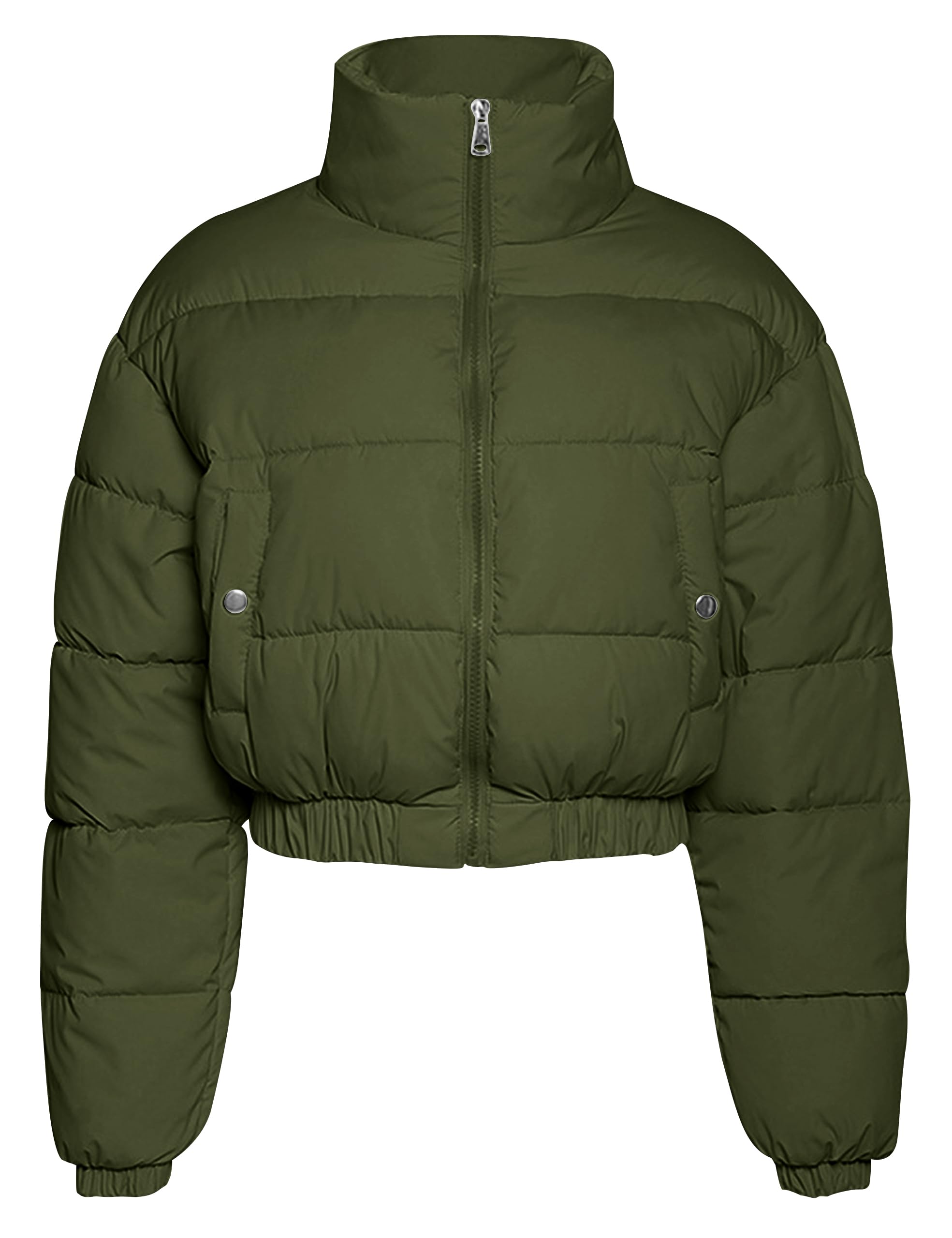 Jaqueta feminina recortada com zíper e gola acolchoada para inverno