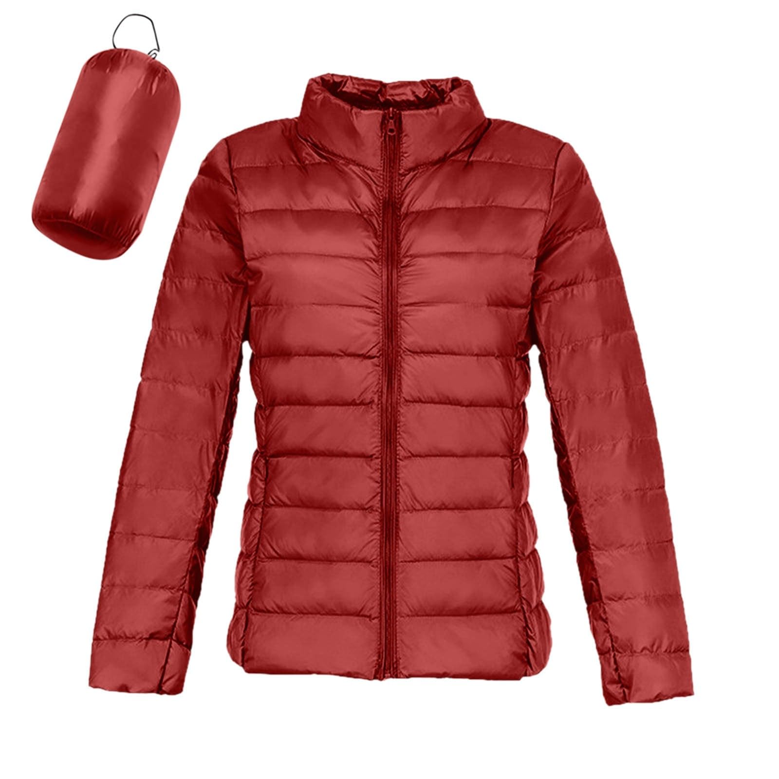 Puffer Jacket Women Casual Feather Lightweight Down Jackets Packable Solid Color Puffer Coats With Storage Bag Winter