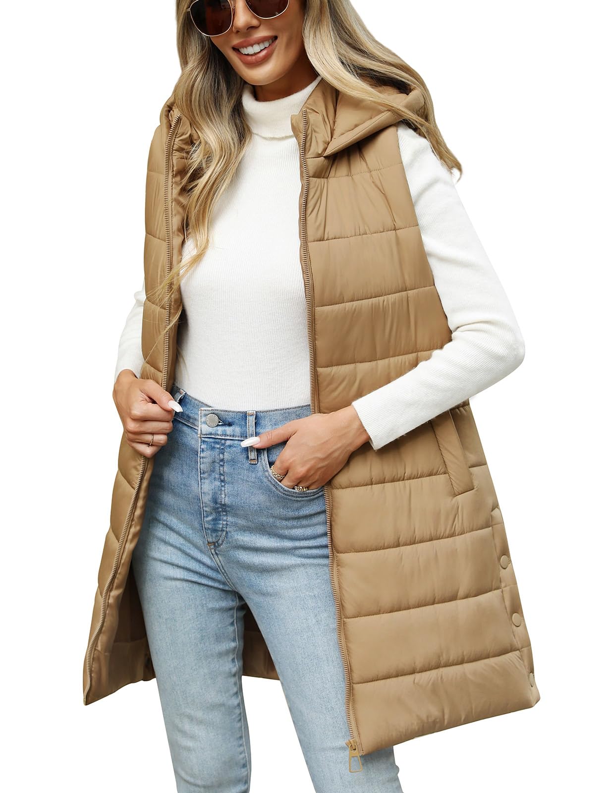 Puffer Vest for Women Long Hooded Lightweight Puffy Jacket Warm Sleeveless Fall Winter down Coat Outerwear