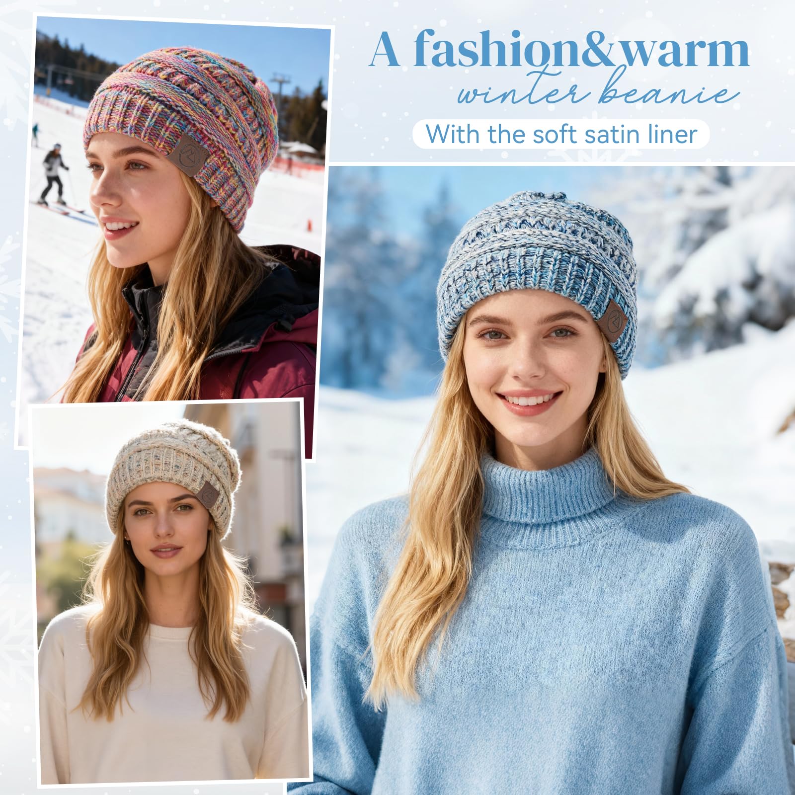 Женская зимняя шапка без полей на кружевной подкладке и шелковой подкладке, повседневная и милая зимняя теплая вязаная лыжная шапка