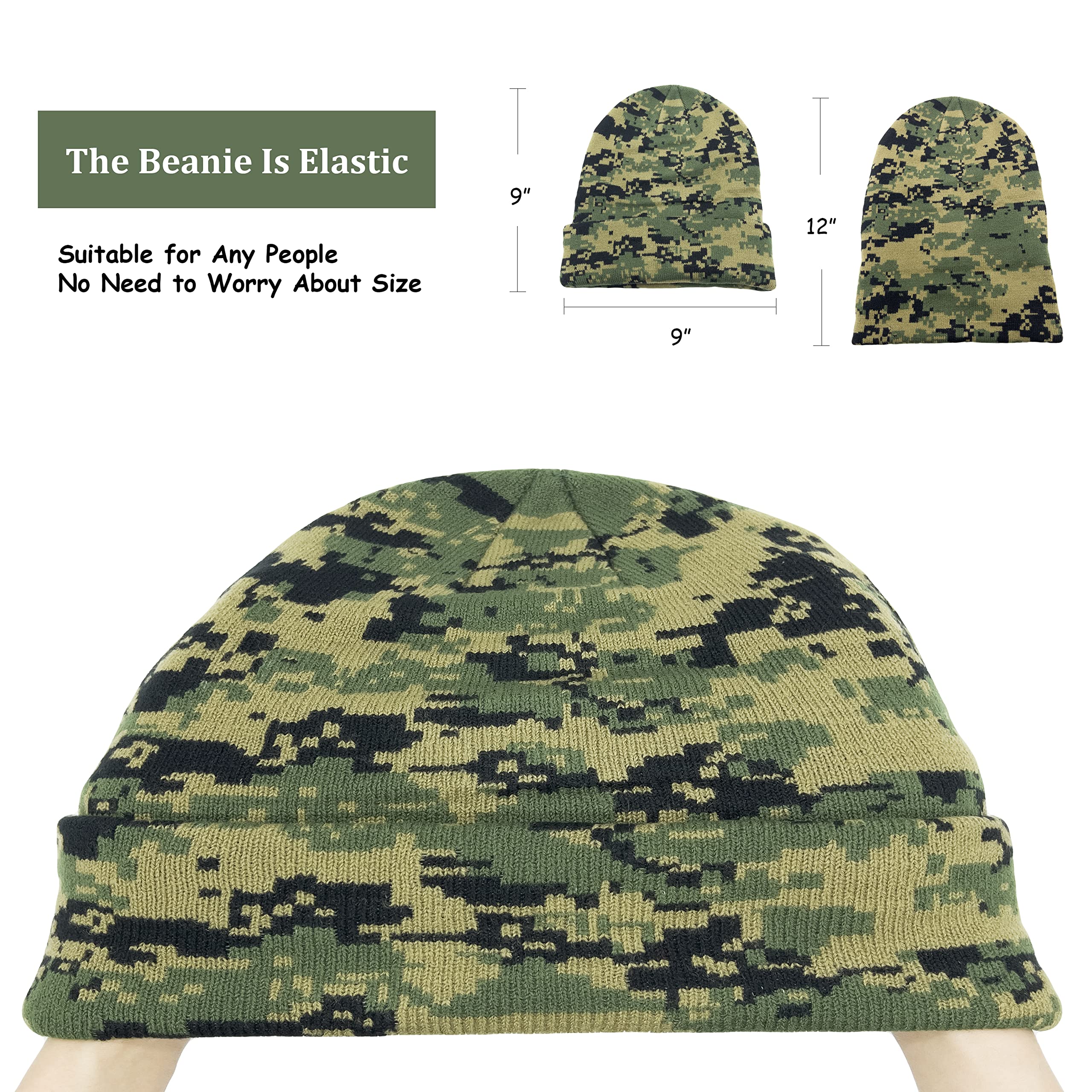 Мягкая и теплая вязаная шапка нейтрального цвета с оборками и полями без козырька для зимнего камуфляжа. Подходит как для мужчин, так и для женщин