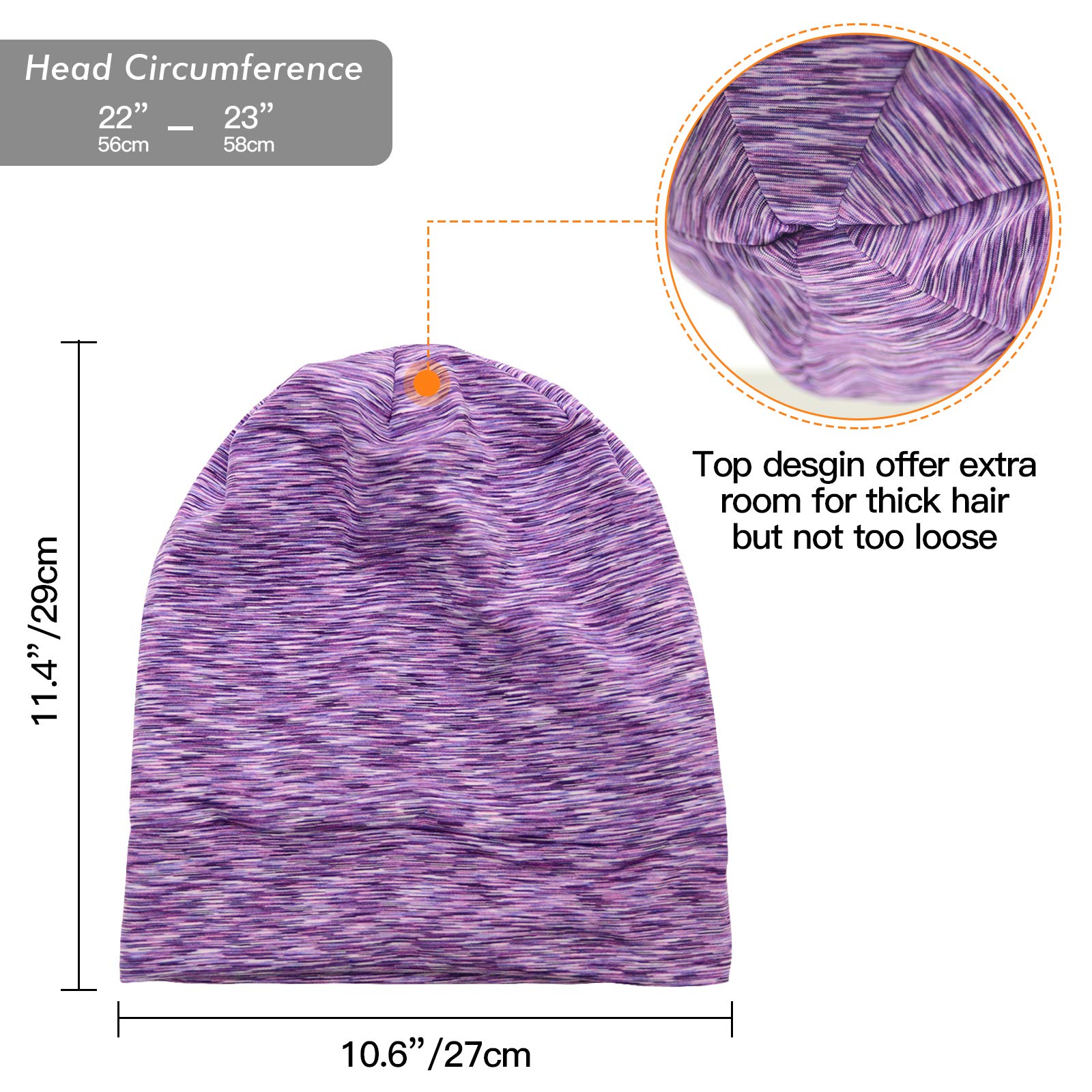 Silk satin lined sleep cap - Adjustable fixed overnight hair wrap cap with a relaxed beanie style, suitable for protecting curly hair of both women and men - Blended purple