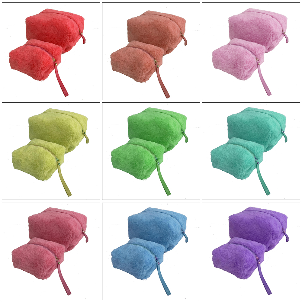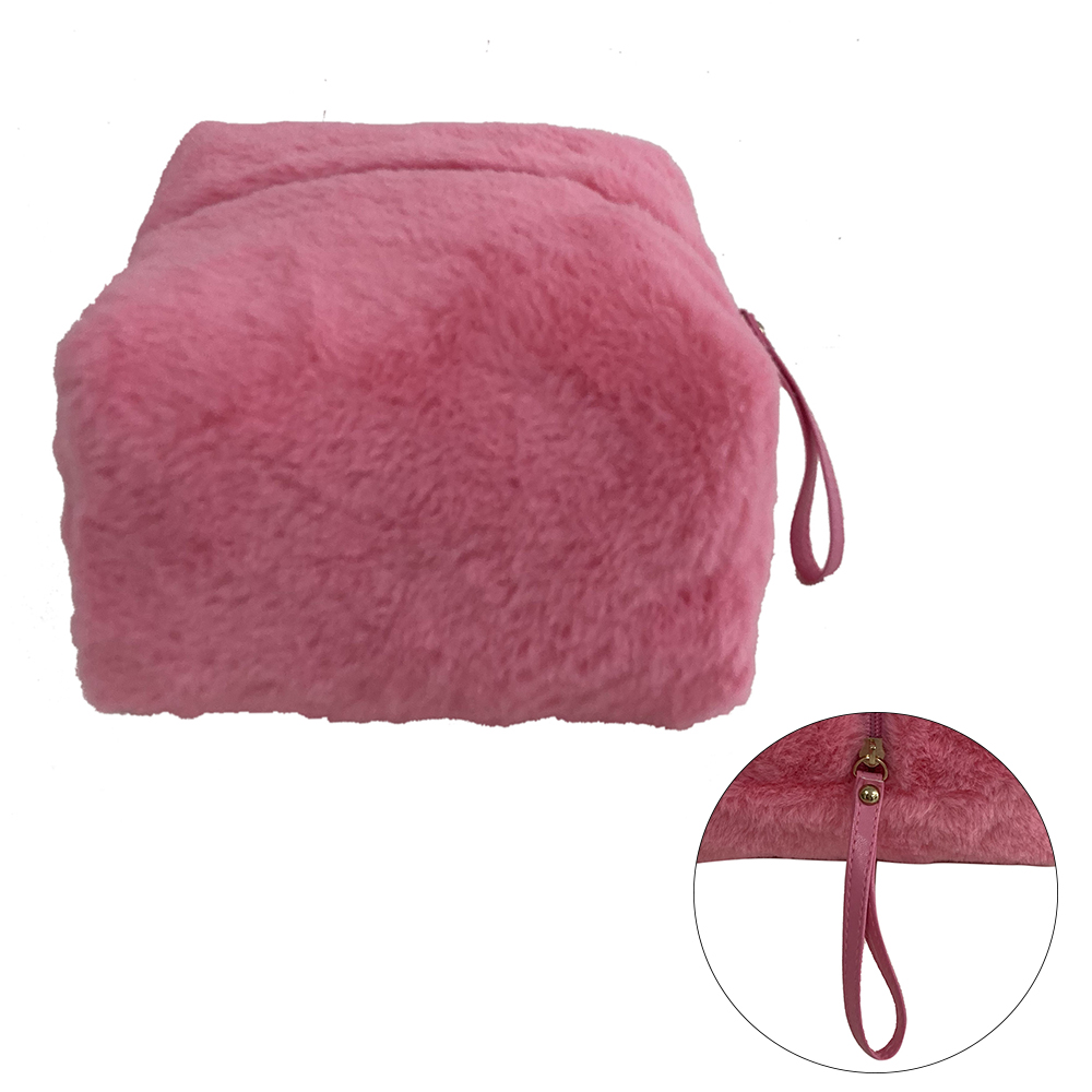 Small Plush Makeup Bag Soft Beauty Cosmetic Bag Cute Travel Zipper Toiletry Bag Multifunctional Organizer Pouch for Women