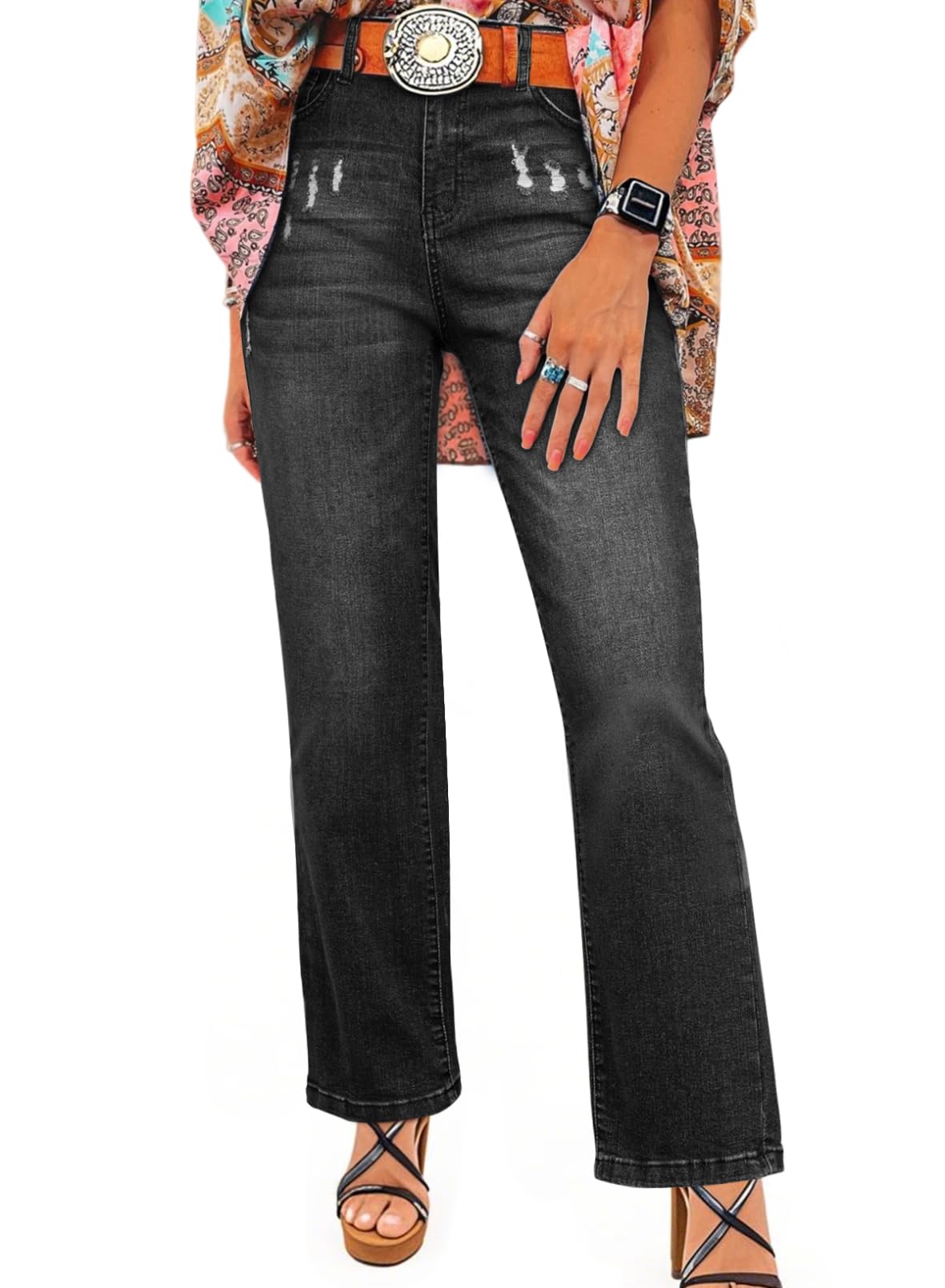 Straight Leg Jeans for Women Trendy High Rise Tapered Flare Jeans Stretchy Wide Leg Ankle Denim Pants with Pockets