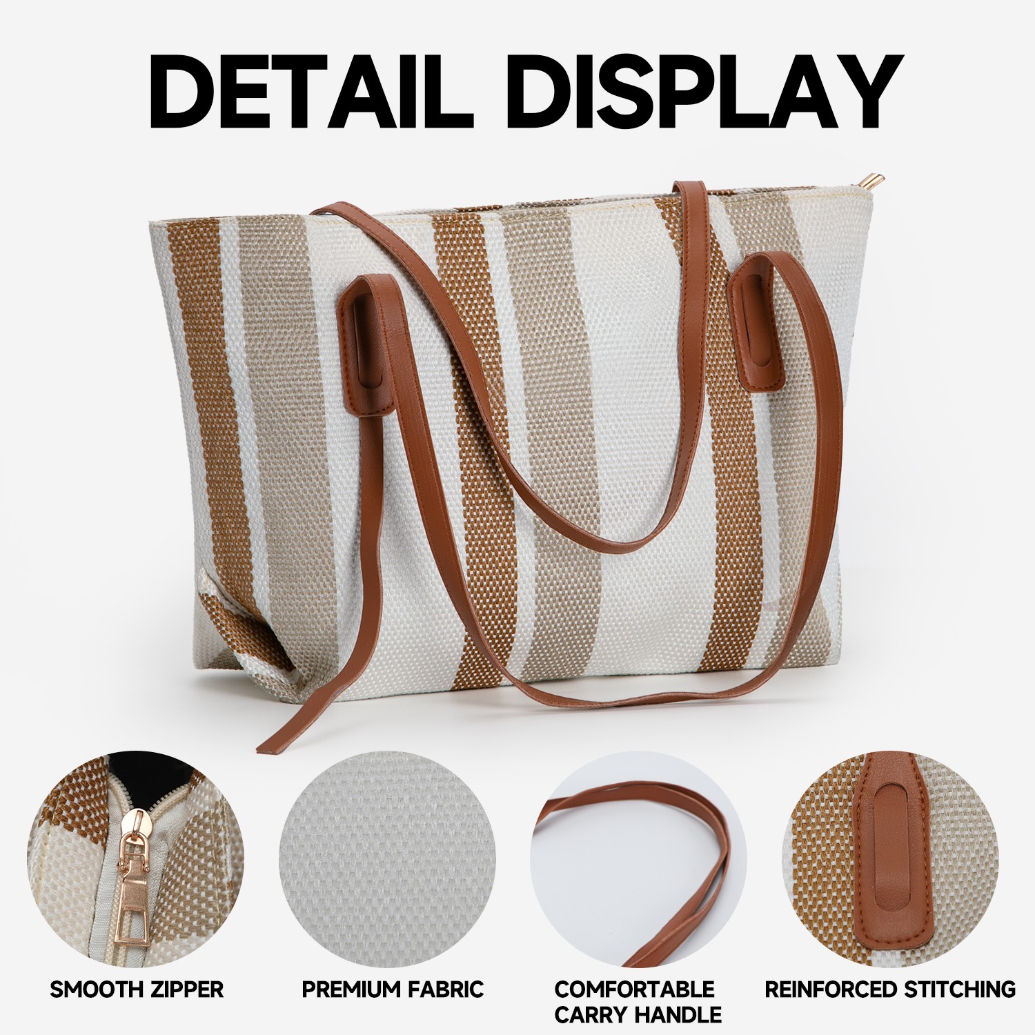 Stylish Modern Lightweight Women's Canvas Tote Bag Customizable Zipper for Daily Use-for Shopping Work Travel Office School