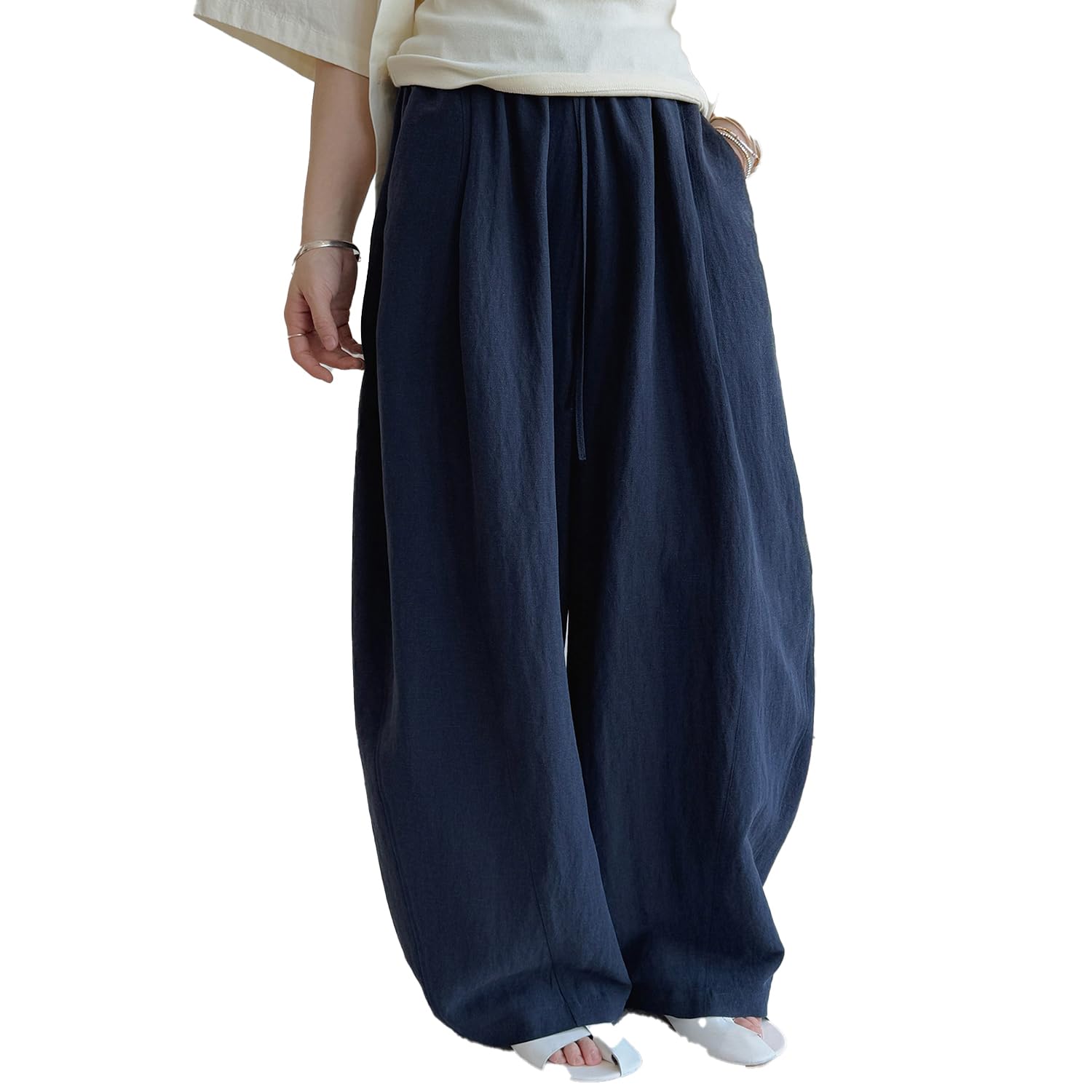 Summer Women's Linen Pants - High Waisted Straight Leg Loose Fit Casual Trousers with Pockets