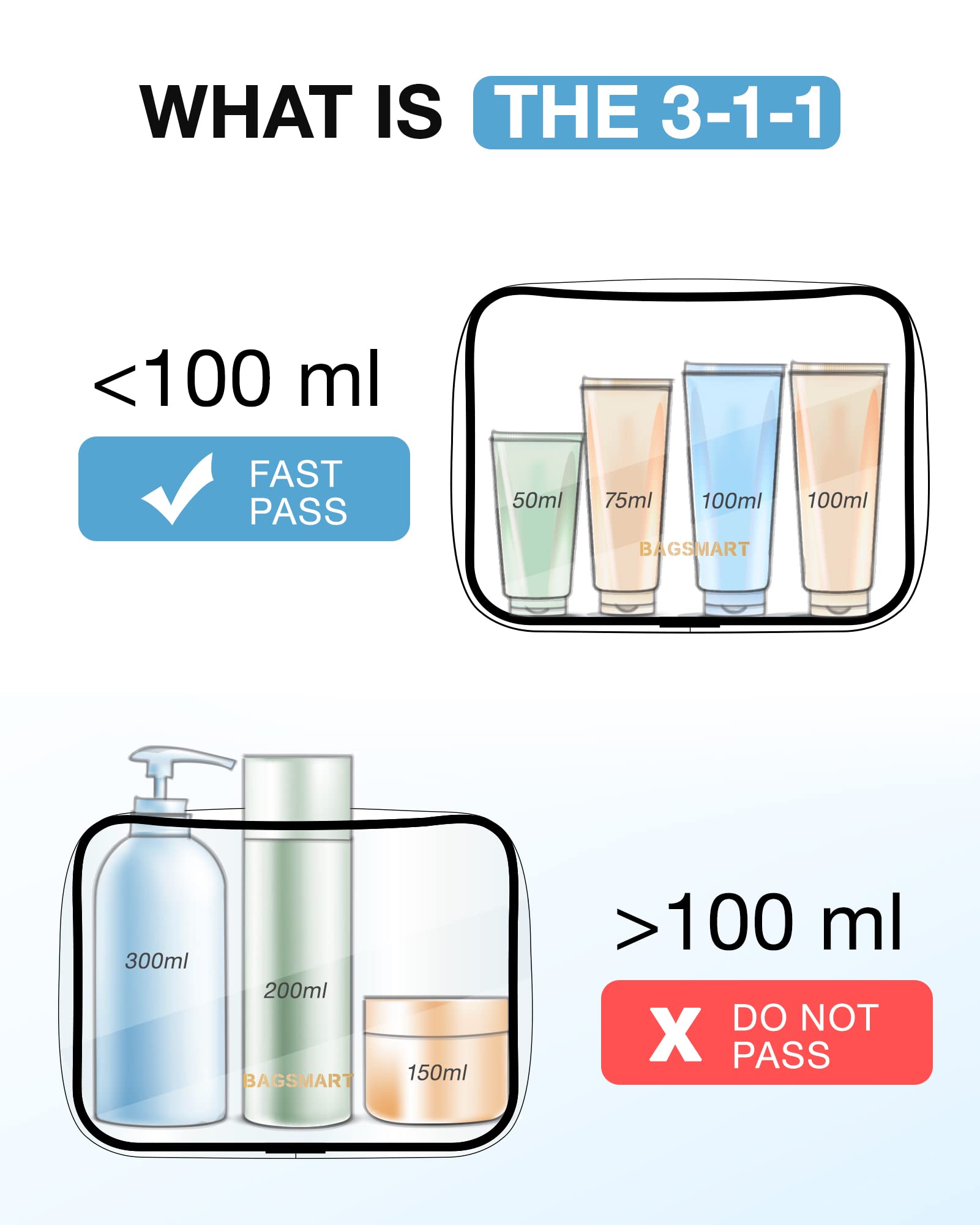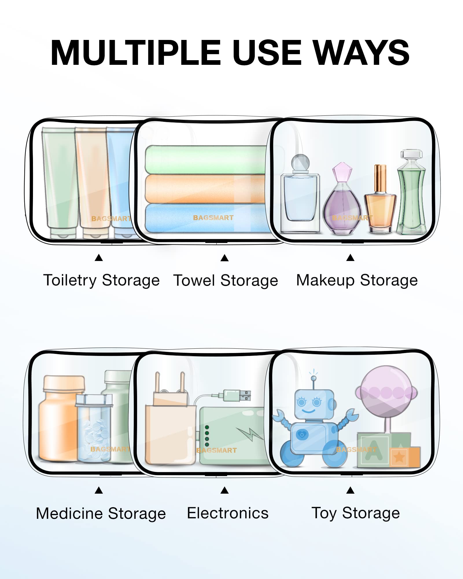 Toiletry Bag, 2 Pack TSA Approved Travel Toiletry Bag Carry on Travel Accessories Bag Airport Airline Quart Size Bags Water Repellent Makeup Cosmetic Bag for Women