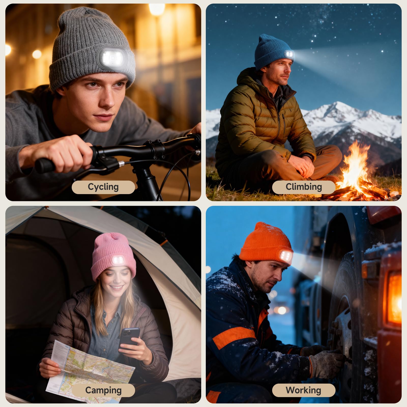 Unisex LED Beanie with Light, USB Rechargeable Headlamp Winter Knitted Hat, Christmas Gift for Men W