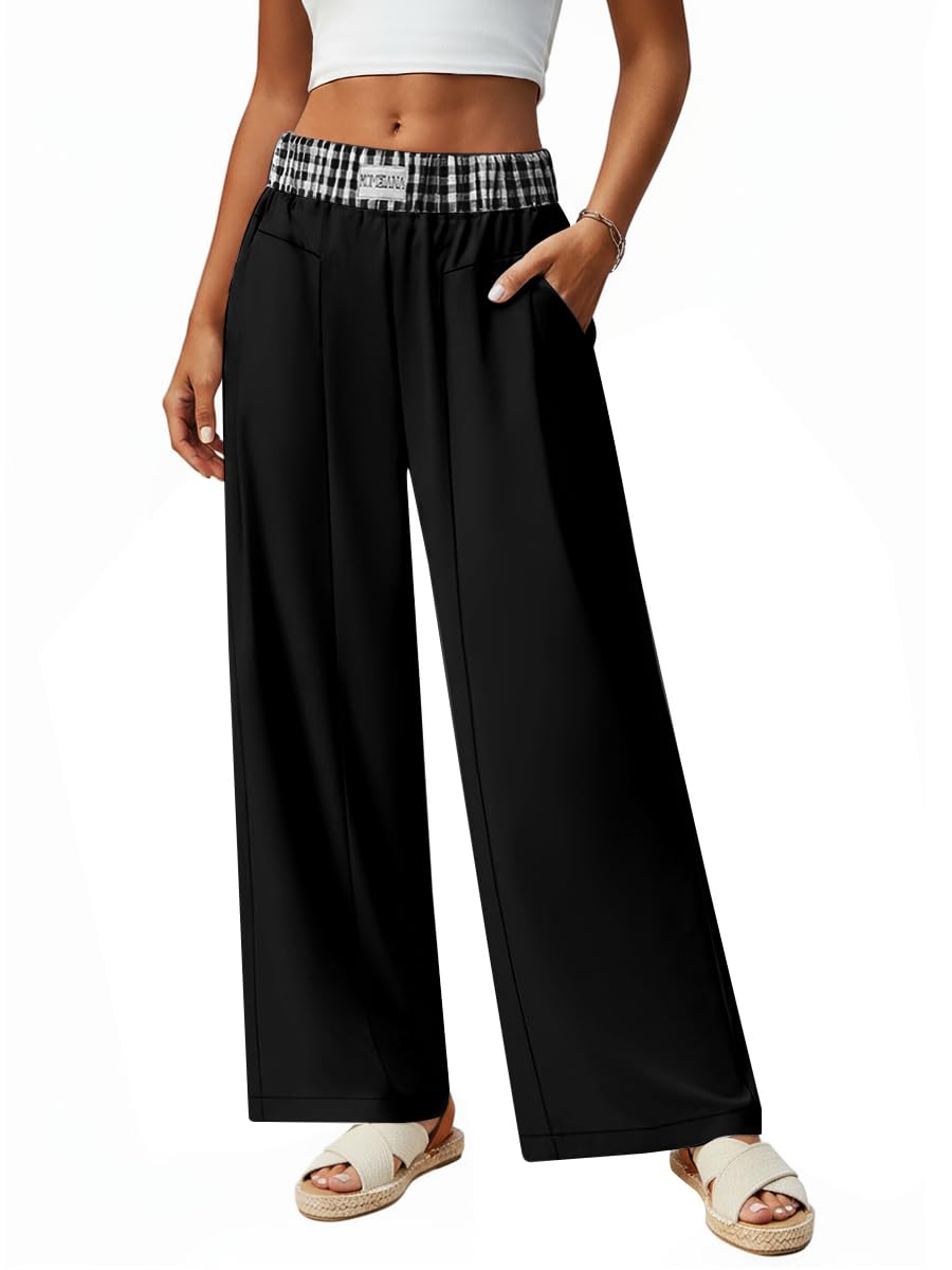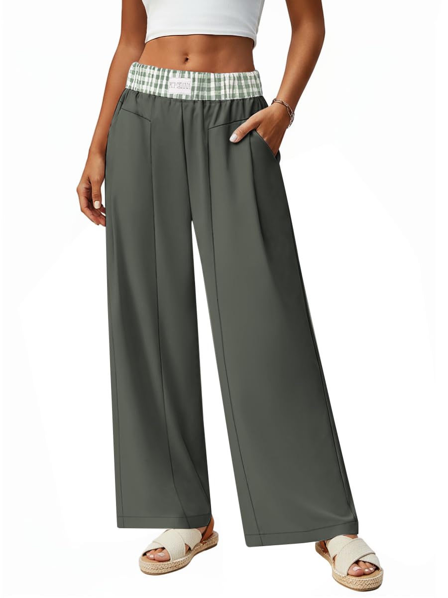 Wide Leg Dress Pants for Women High Waisted Business Casual Pants Work Office Trousers Slacks with 3 Pockets