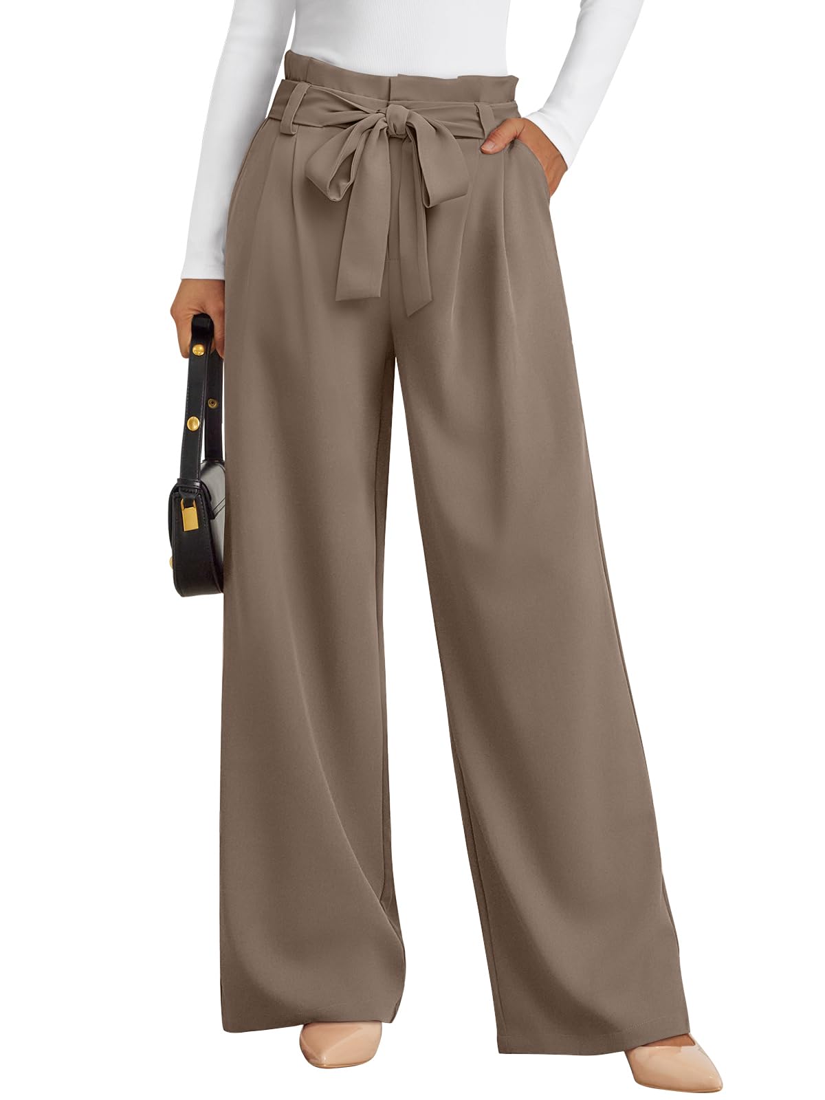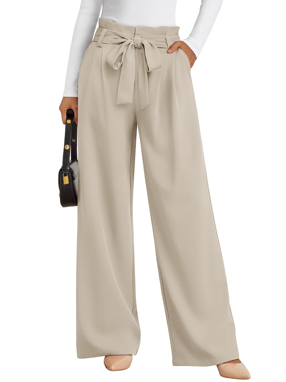 Wide Leg Dress Pants Women's Paperbag High Waisted Business Casual Trousers with Removable Belt
