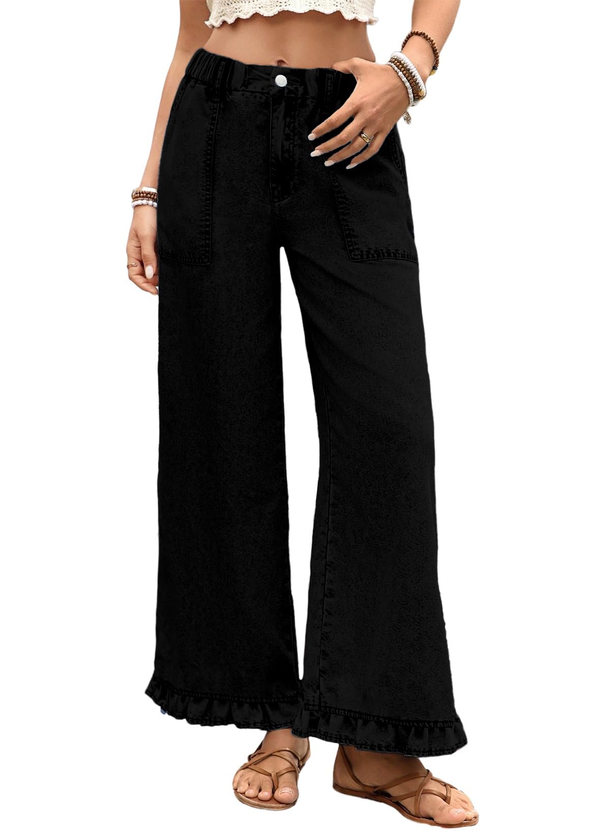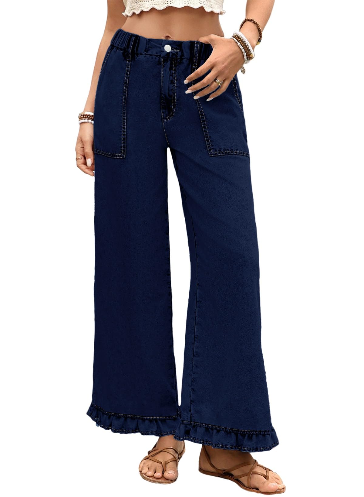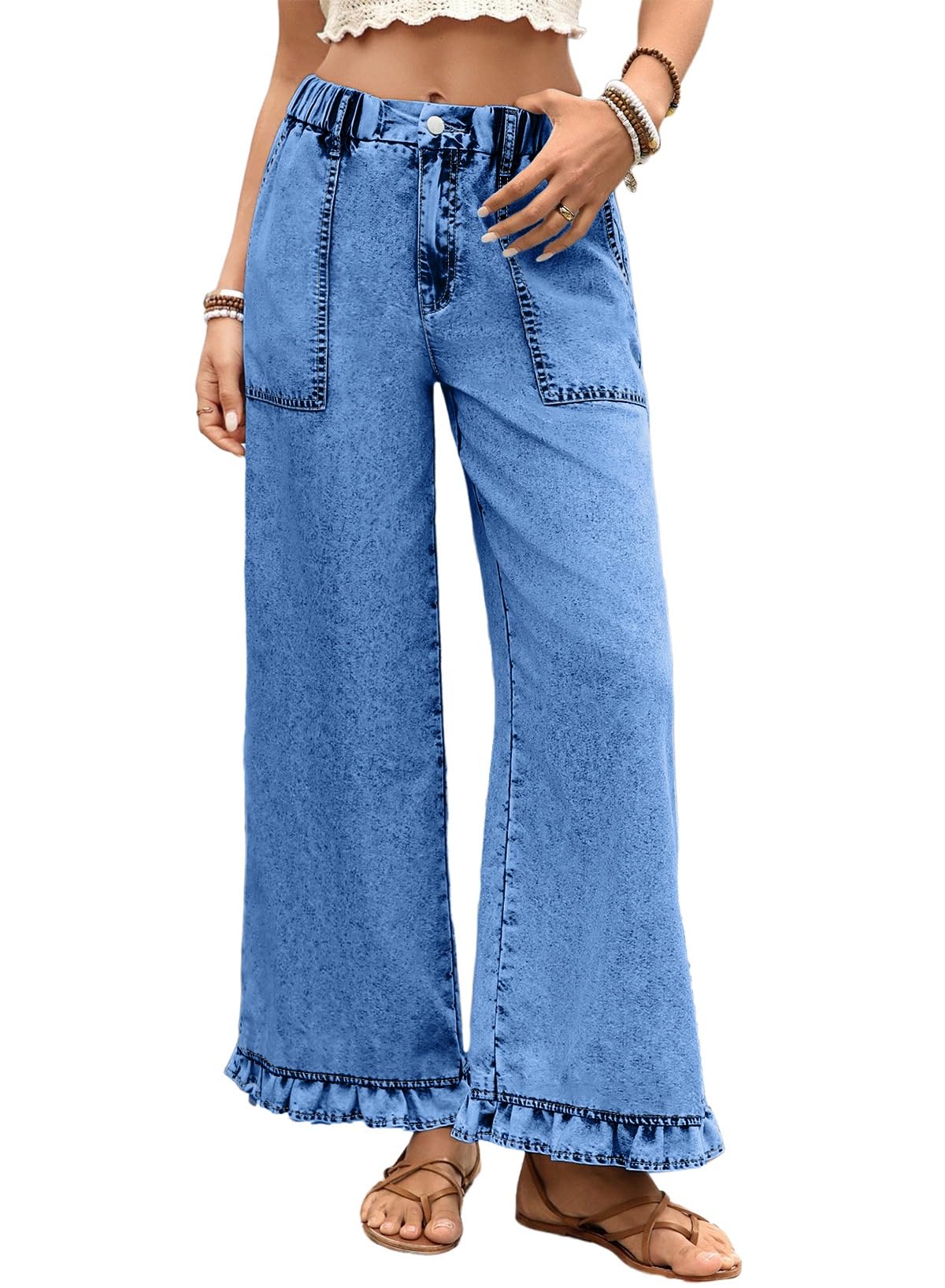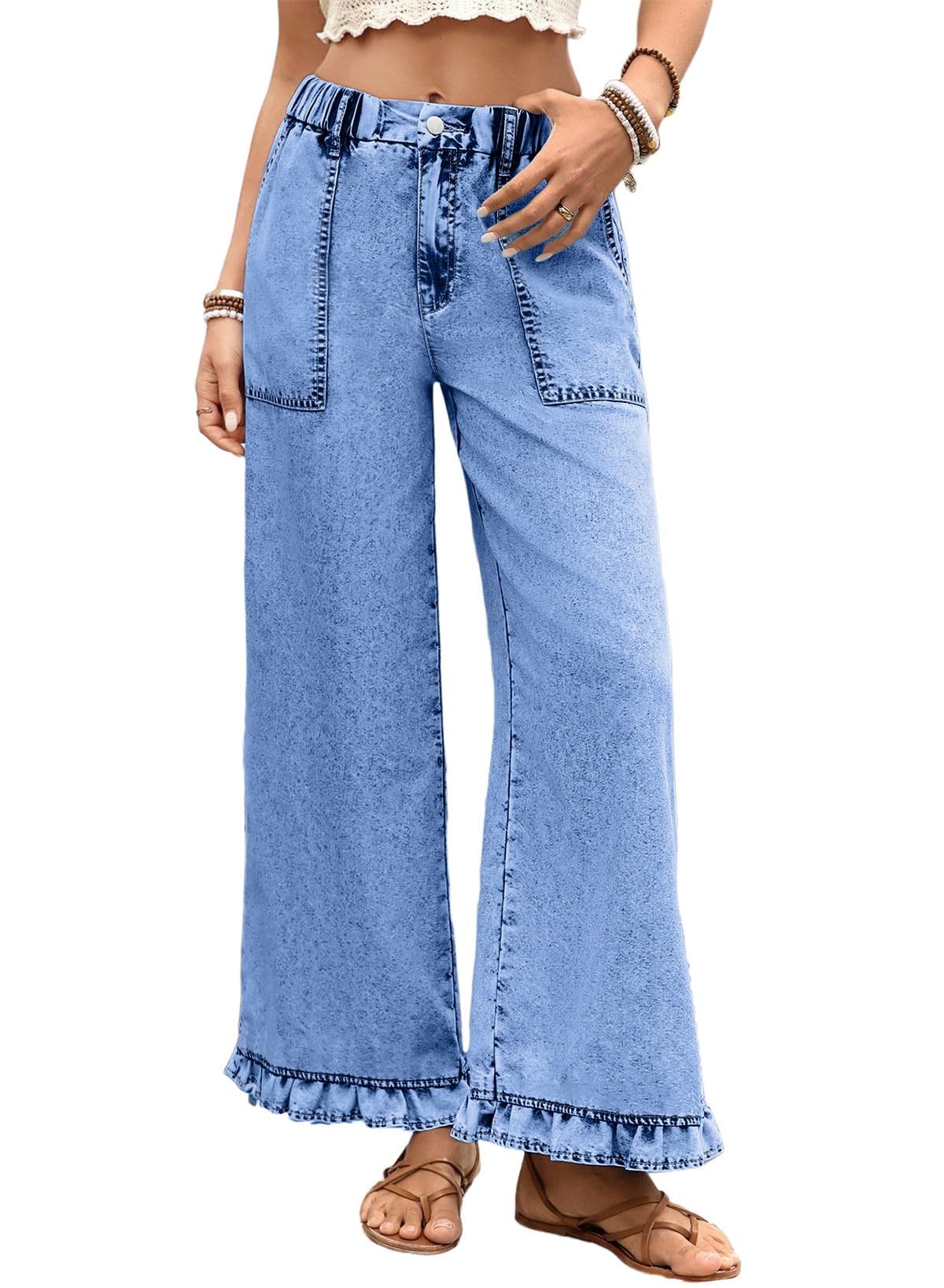 Wide Leg Jeans for Women Stretch High Wasited Baggy Trendy Denim Jean Ruffle Hem Pants