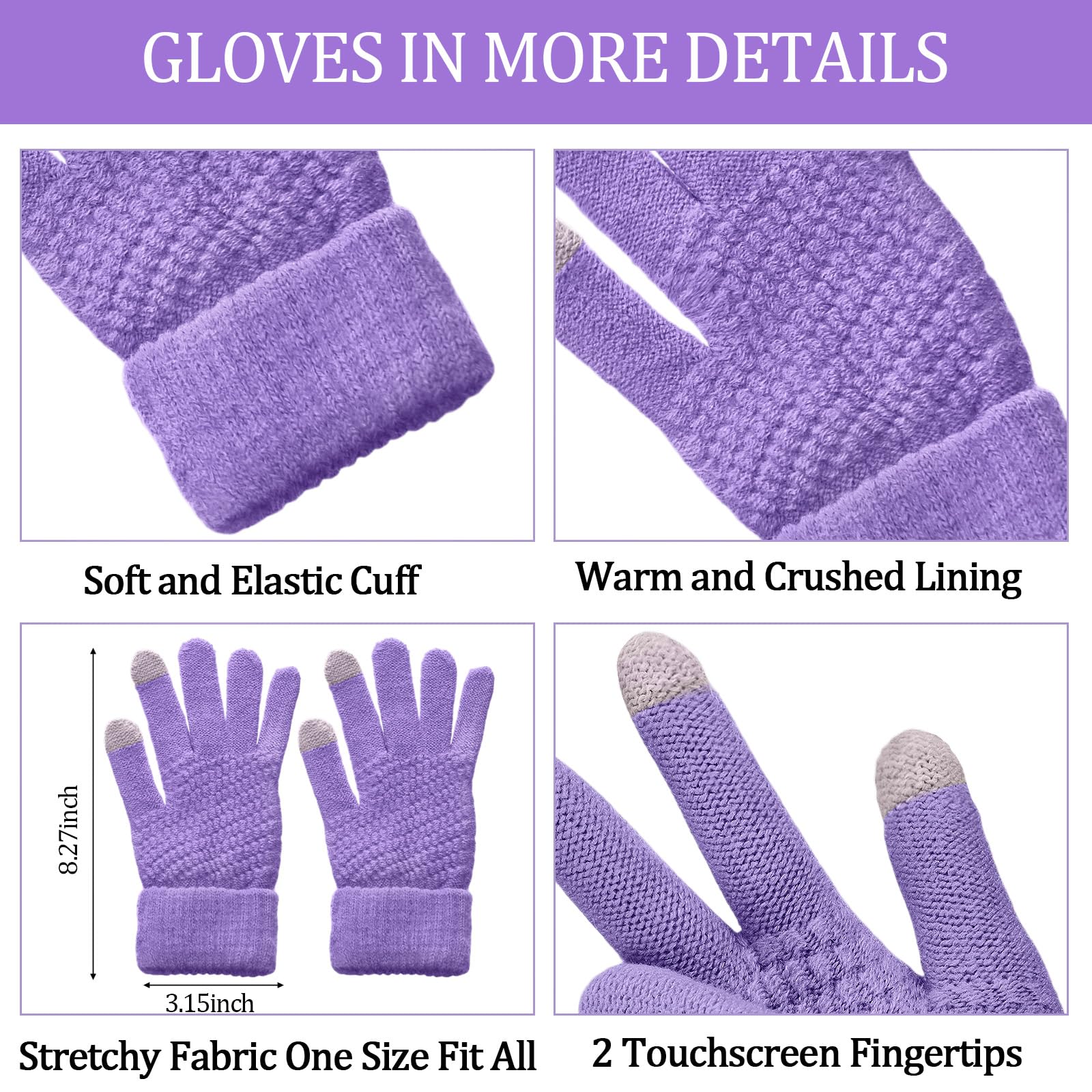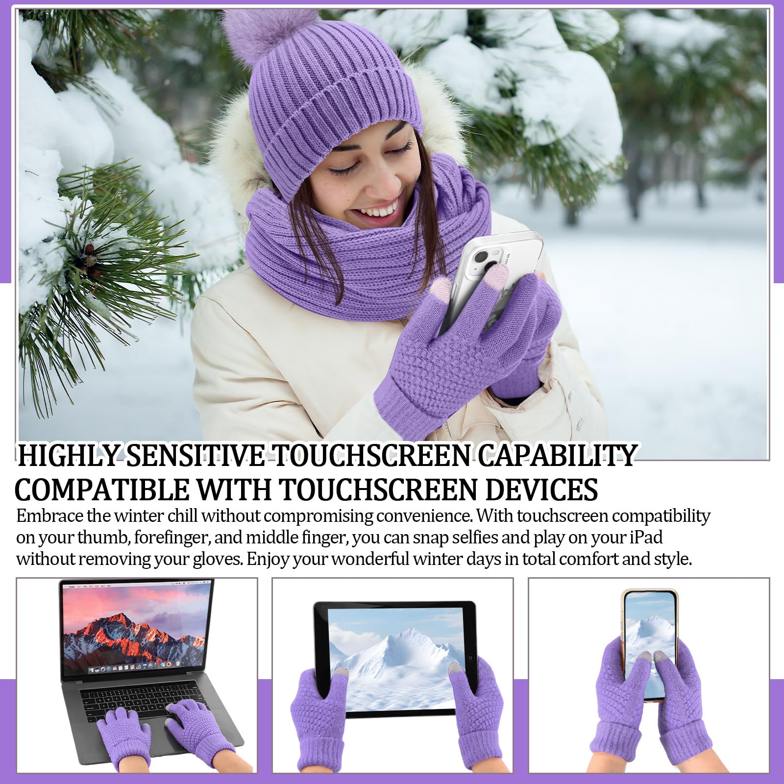 Winter beanie scarf and gloves set for women, warm hat with long fleece scarf and touchscreen gloves, suitable for cold weather