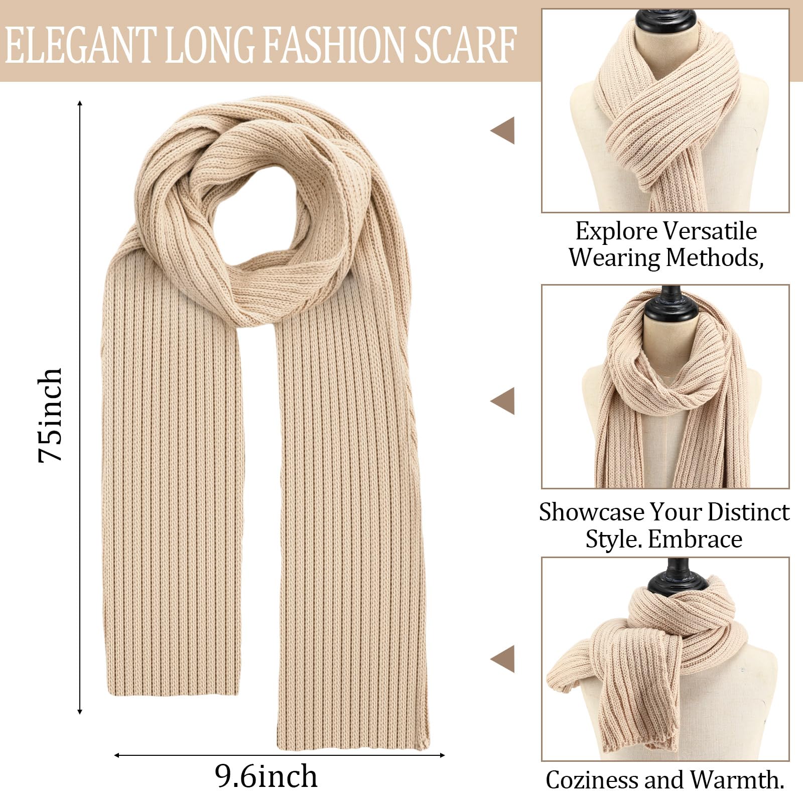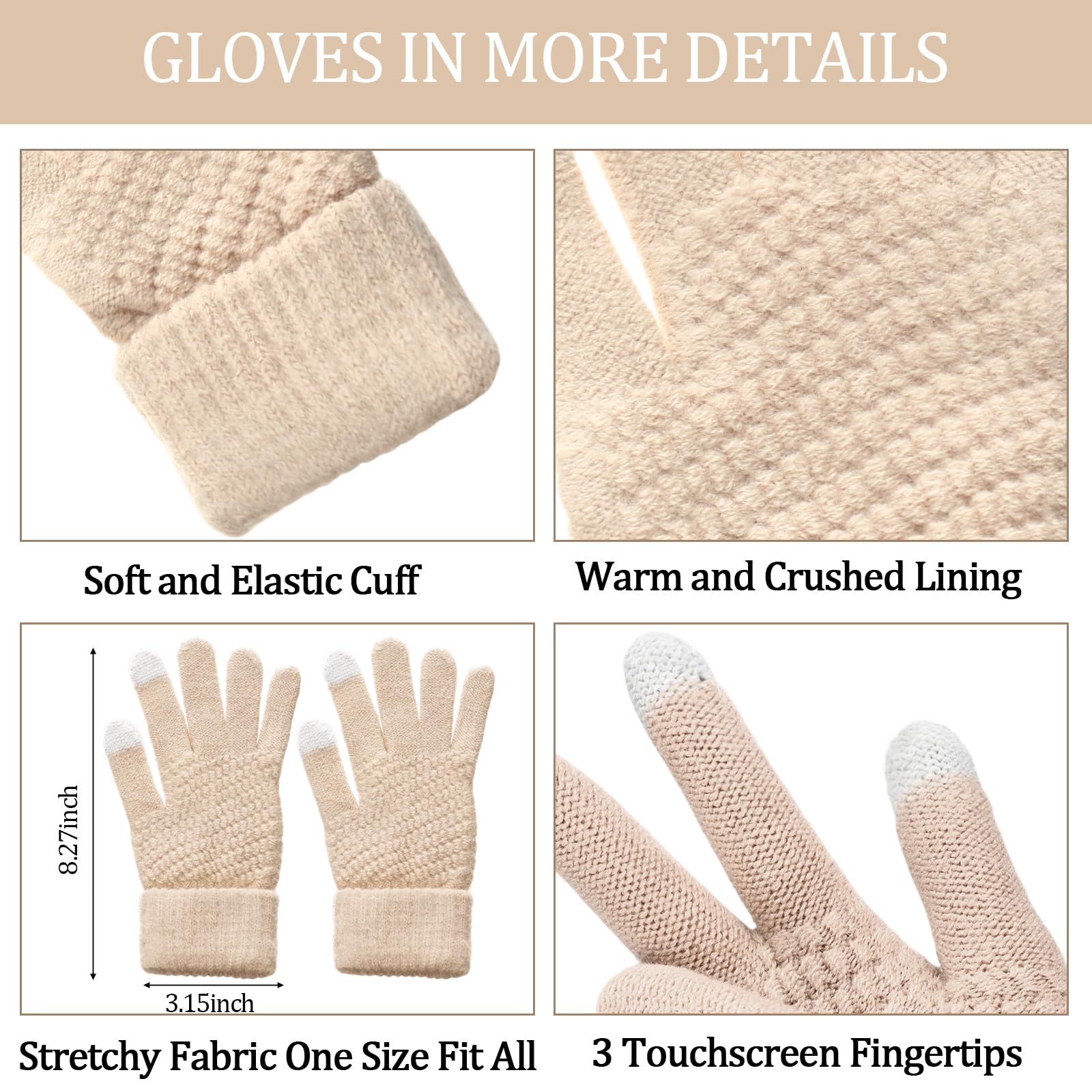 Winter beanie scarf and gloves set for women, warm hat with long fleece scarf and touchscreen gloves, suitable for cold weather