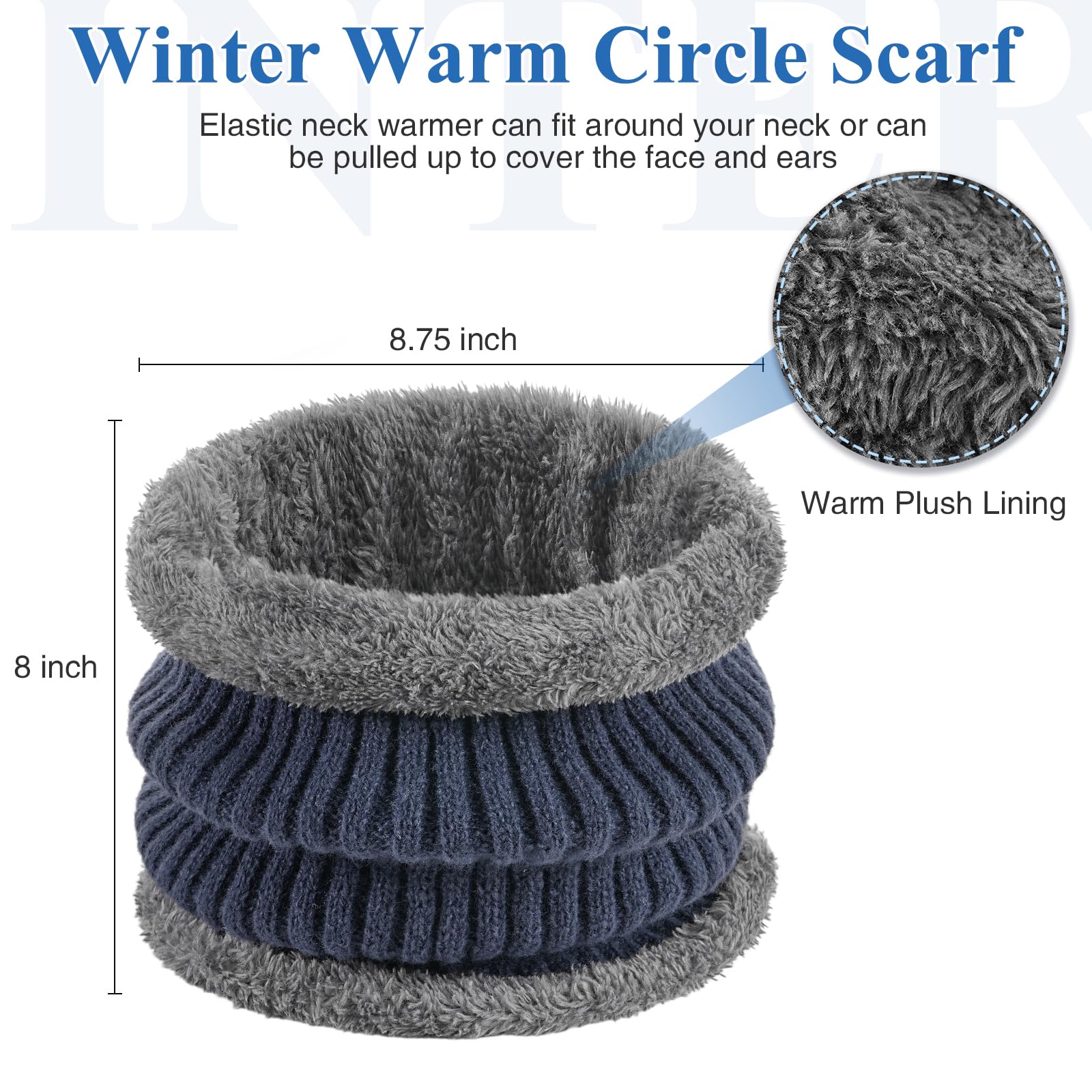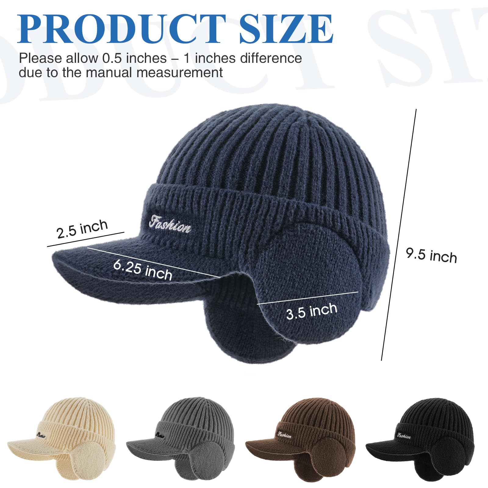 Winter beanie with ear cover, hat with brim and scarf set, warm wool-lined skullcap neck warmer