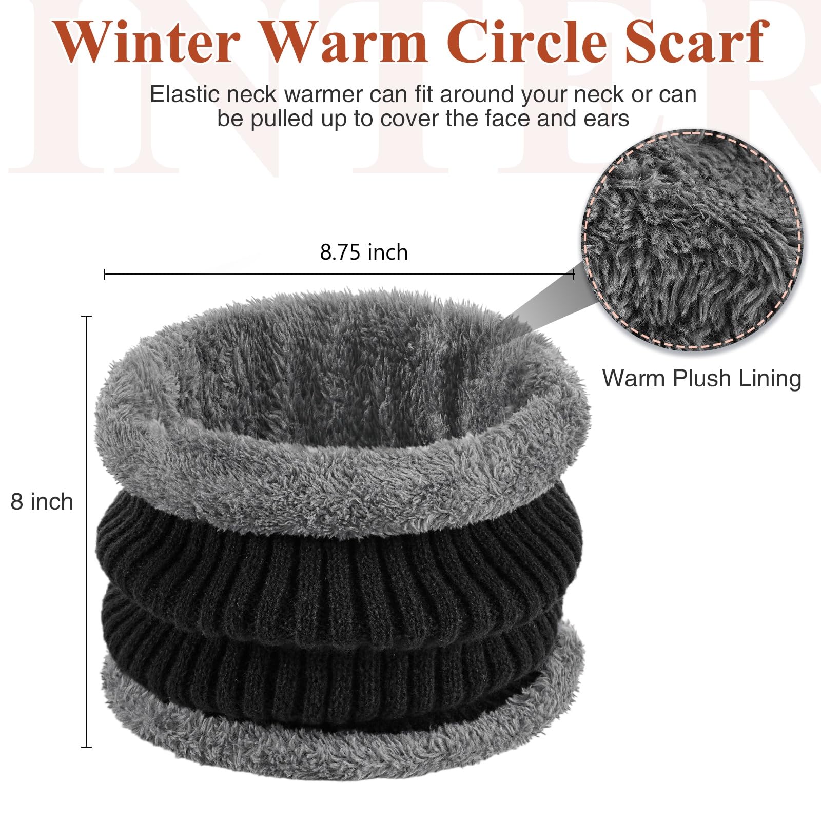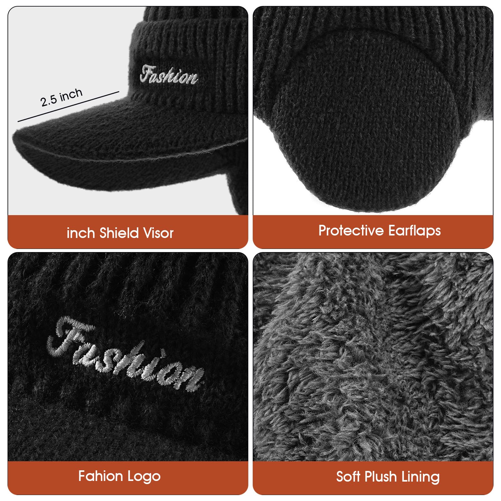 Winter beanie with ear cover, hat with brim and scarf set, warm wool-lined skullcap neck warmer