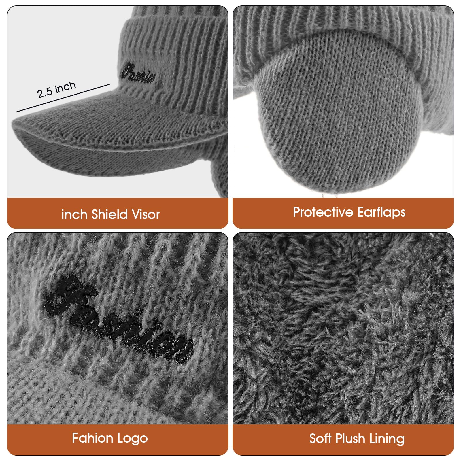 Winter beanie with ear cover, hat with brim and scarf set, warm wool-lined skullcap neck warmer