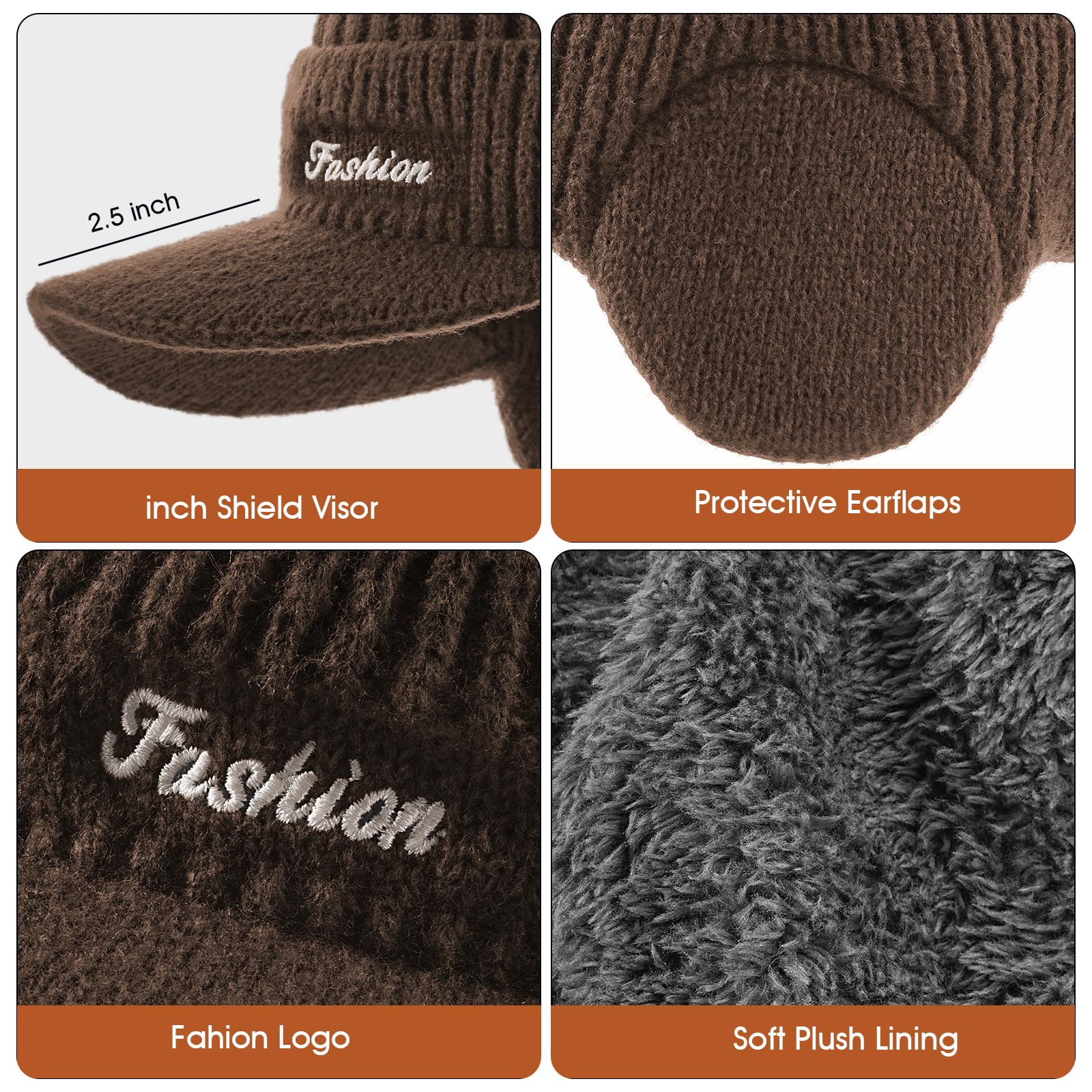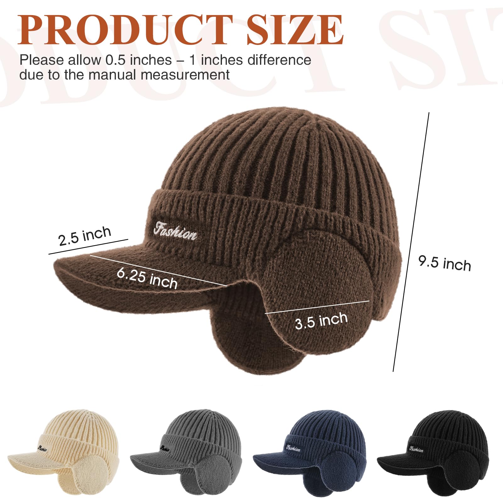 Winter beanie with earmuffs, hat with brim and scarf set, warm wool-lined skullcap neck warmer
